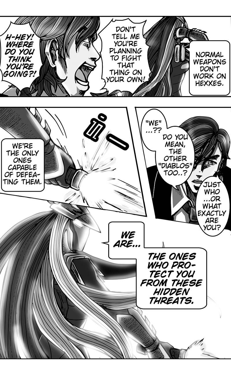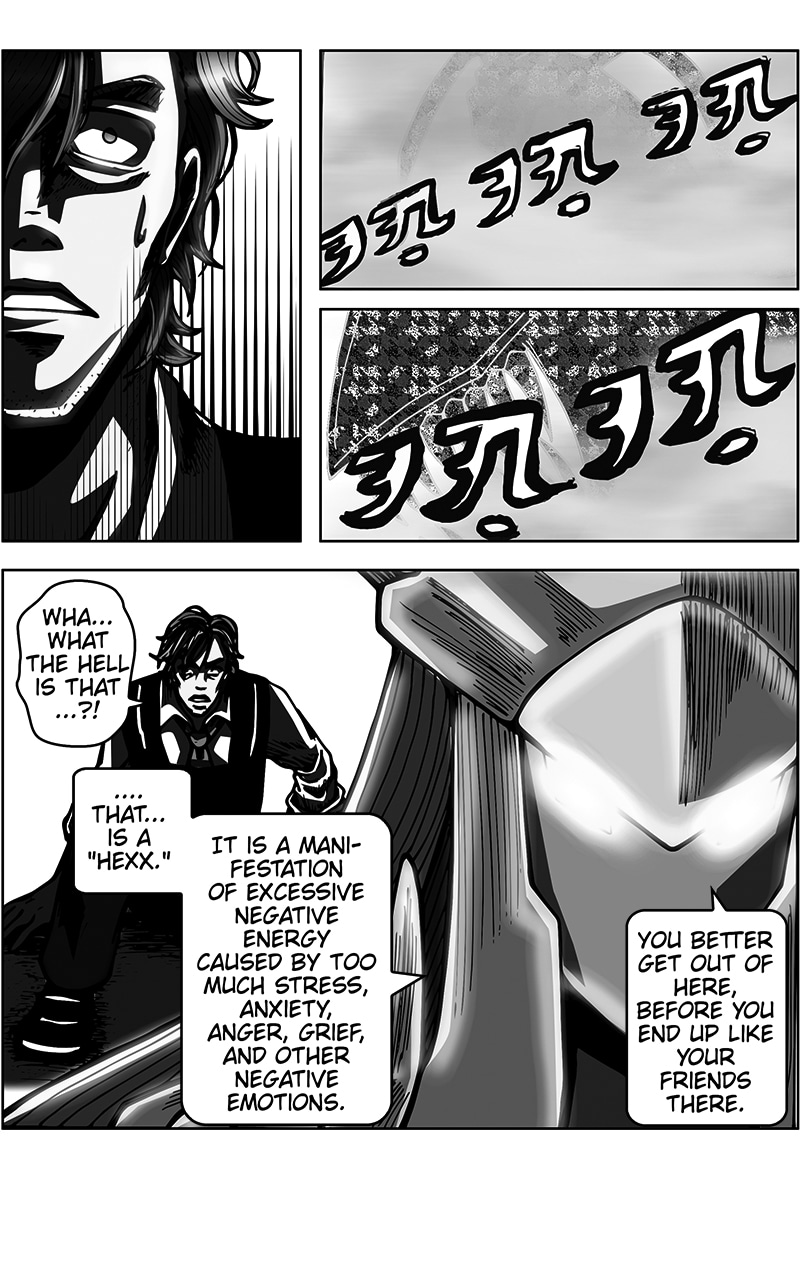 Summary: Three unlikely individuals take part in a program called, "The Propaganda Project." With each of them donning a mechanical armor, this trio must fight, and protect humanity from beings called "Hexx." However, unlike your usual superheroes, these people do not get the praise and credit they deserve, and instead, are seen as a threat to humanity, and a menace to society... Much like how their lives are without their machines.