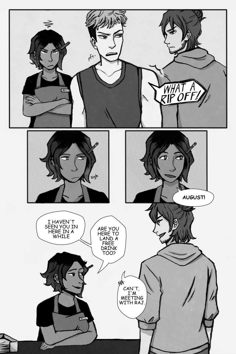 On an outrageously loud night August was met with no messages, bad music, and more coffee than he asked for at the local coffee shop. Not to mention a temper to match his night. But maybe the boy he met made it worth the walk home.