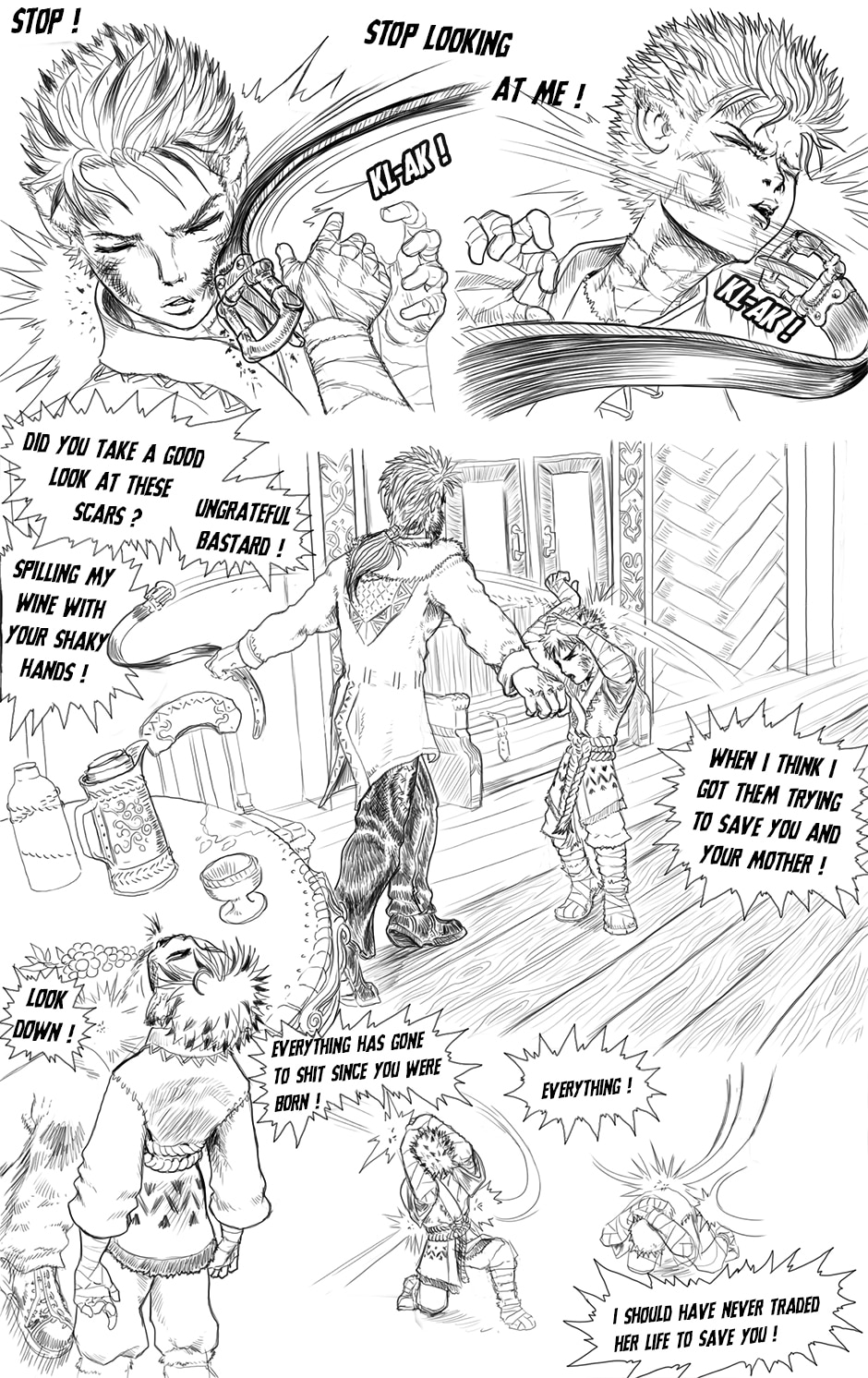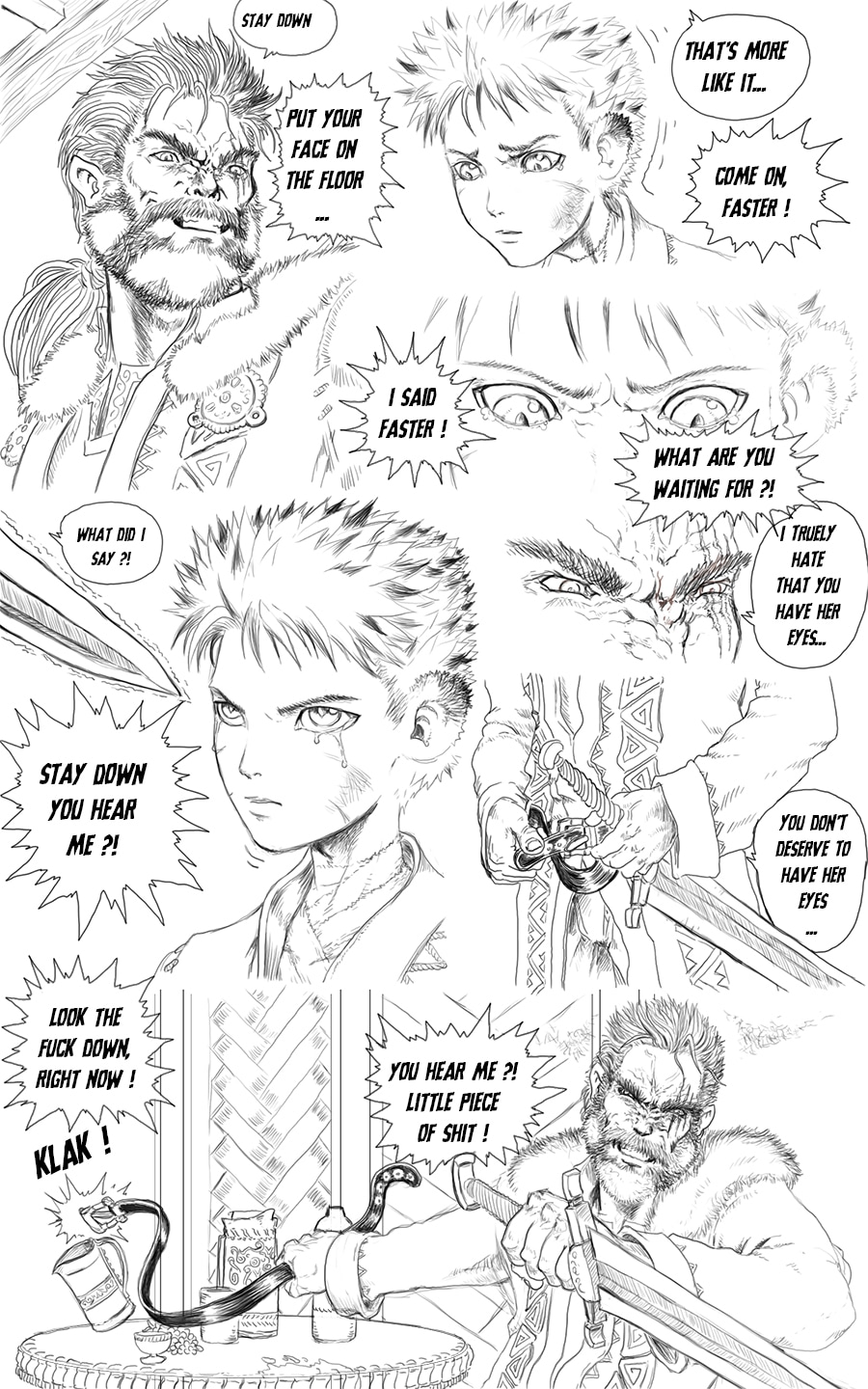 Well, you haven't lost me as a sub. This is very realistic. He's injecting his pain onto his child. So sad, so terrible. But your art is gorgeous!