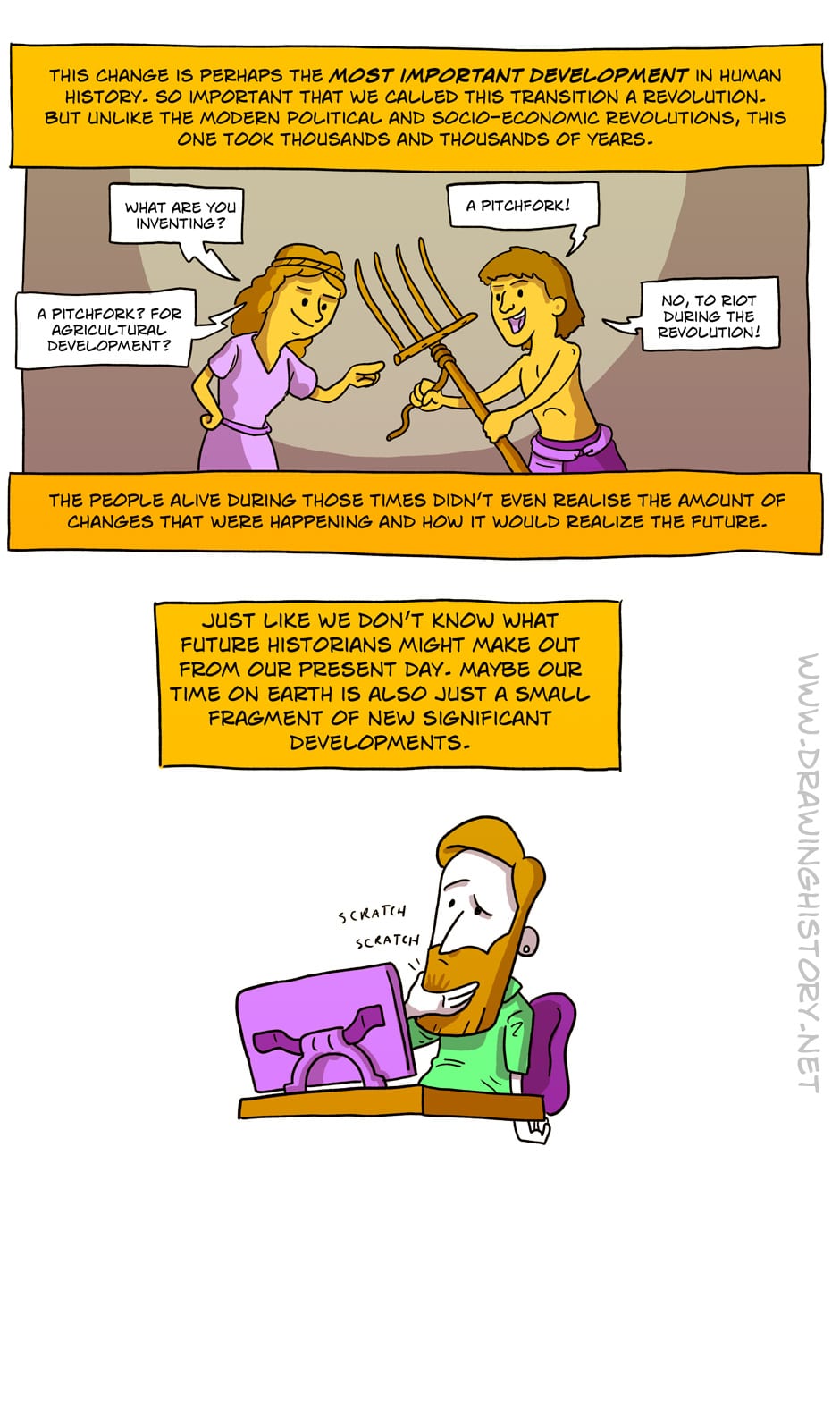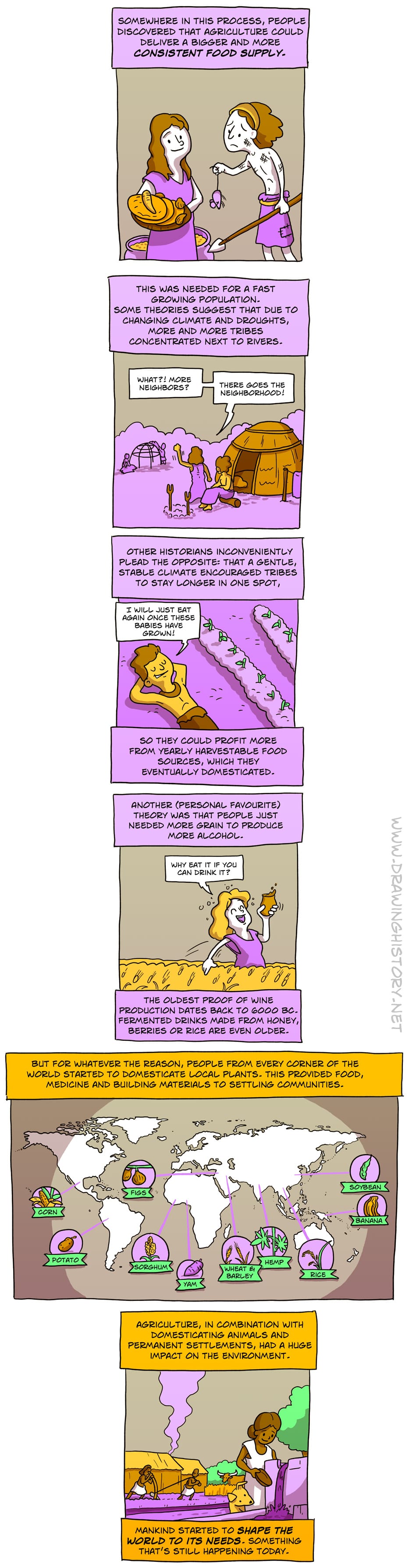 Although hunter-gatherer worked quite well, we still decided to do stuff with agriculture. Today we're going to look at the why and how of the agricultural revolution. Next comic we'll look at the changes that came with this shift in lifestyle