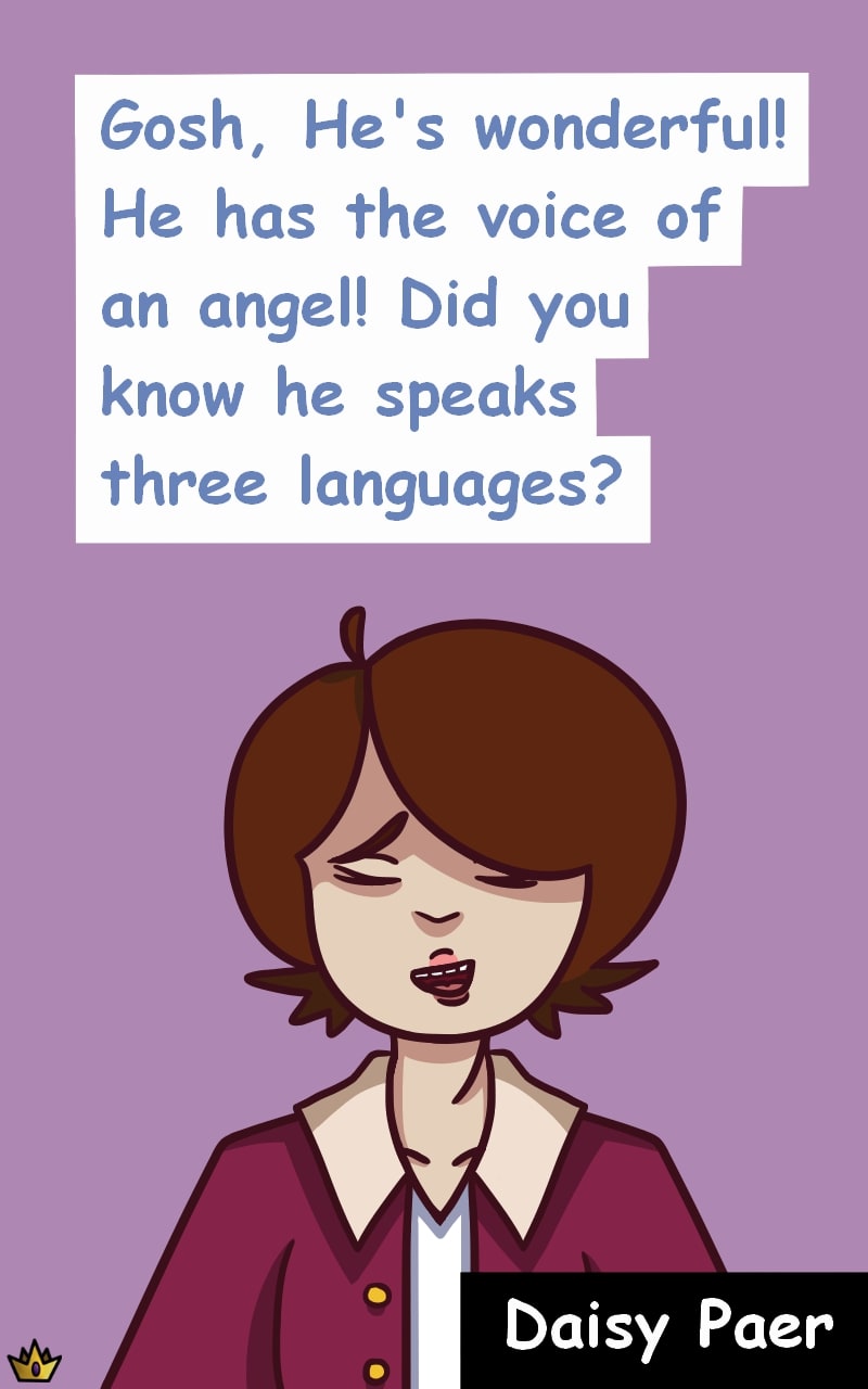 Oh, what a pretty voice he has! Oh, what piercing eyes he has!