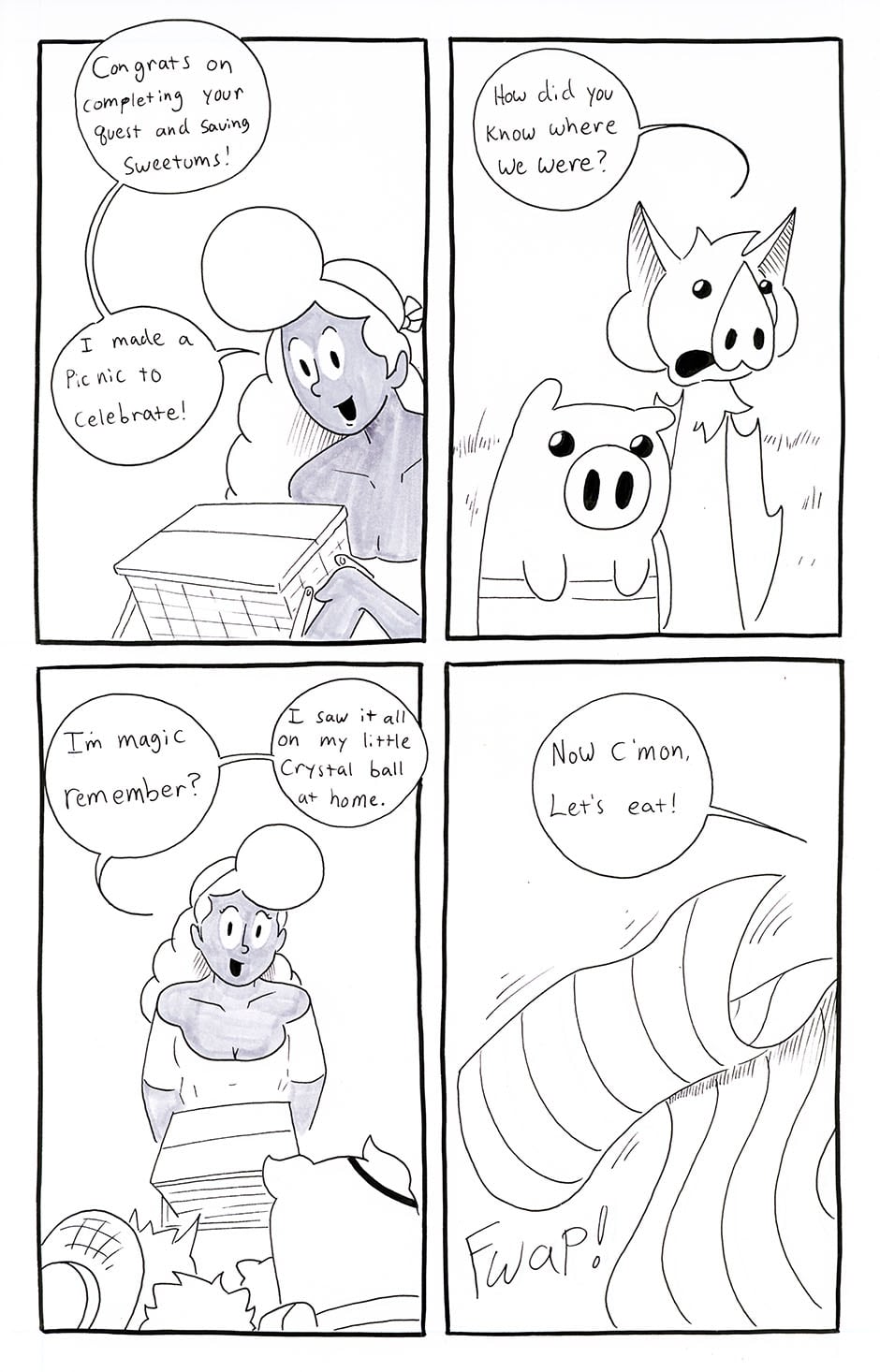 PigQuest follows the unique adventures of Leopold the Pig! Equipped with his fannypack, he is ready to dive headlong into action. But he needs YOUR help!! Every now and again, Leopold will rely on your choices that will progress his adventure and the story! Check the description with each upload to see how to help with Leopolds adventures! Updates every Friday.
