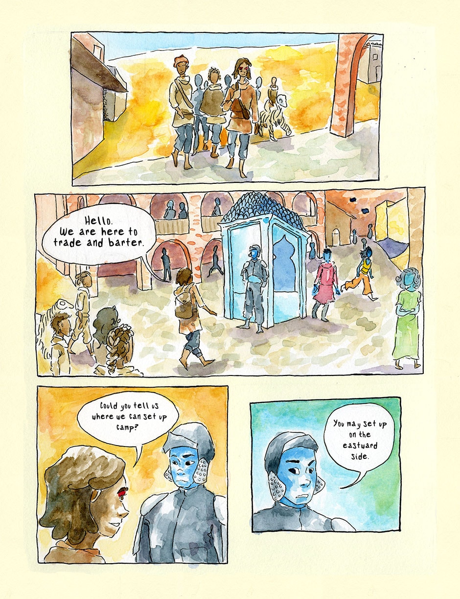 Thaina is a deaf nomad whose family has lived for generations in the desert. But a drought has made their traditional way of life impossible. The nomads decide to migrate into the city, but the city is filled with all sorts of characters and not all of them are welcoming. Thaina is determined to help her family and to discover what’s really going on in the city, no matter what kind of trouble it gets her into. Dorian is anxious about everything and she isn’t sure how flirting with a girl in the market got her involved in running an under ground supply trade for the whole nomad tribe.