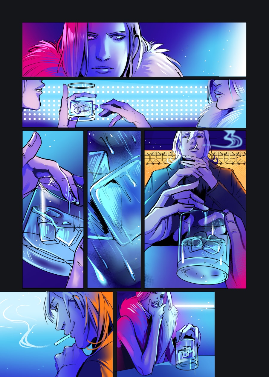 NO WORD is a fully coloured 22 page long sideproject (playing in the future) to Hom[m]E with my characters Akito and Shiki, which have a erotic and passionate date in a stripclub.