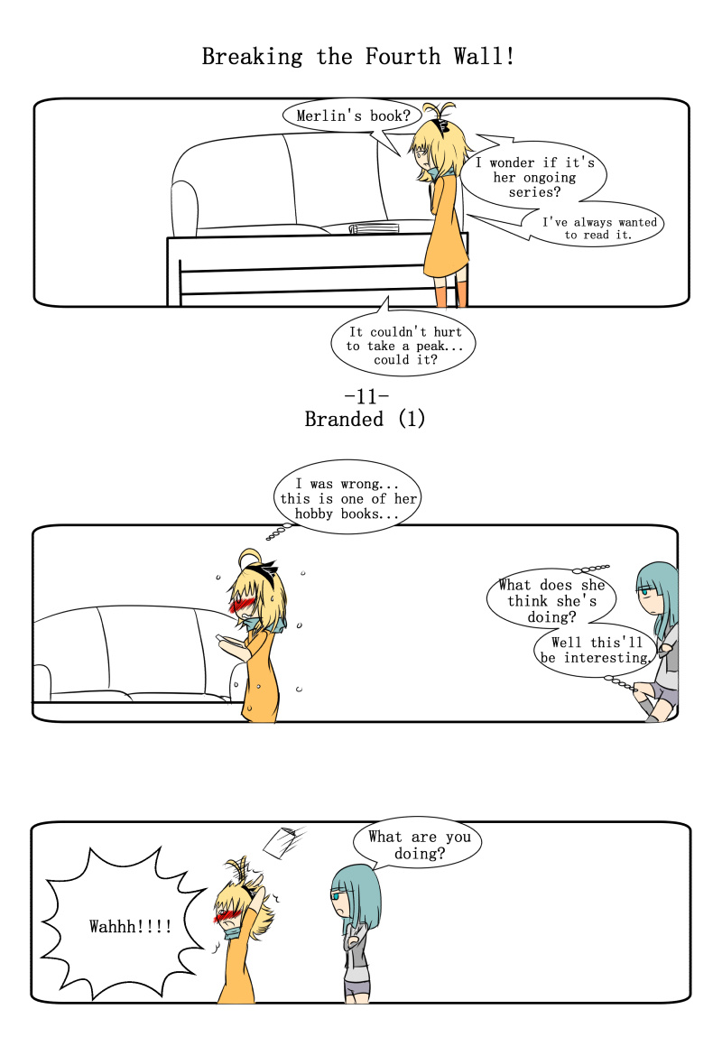 Arthur finds one of Merlin's books on the table...Merlin has a little fun before she gives Arthur the actual book to read.