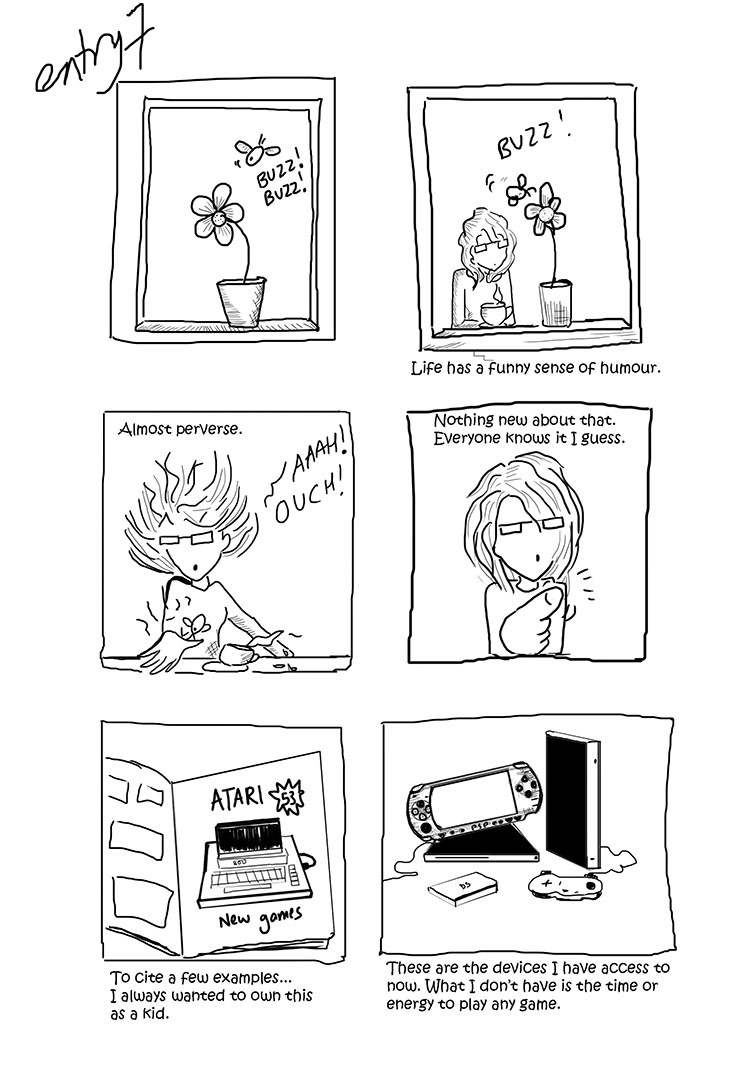 Atari and a puppy... I lost my dog this February (still not over it). I had an Atari when I was a child. If there was a word to describe entry 6 - 9 that would be nostalgia.