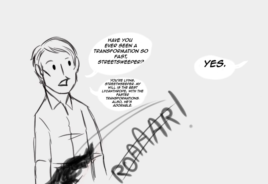 Also, Will is the fastest werewolf. Shhh, don't tell anything, or Hannibal would be VERY disappointed. His werewolf is the best one. And the cutest.