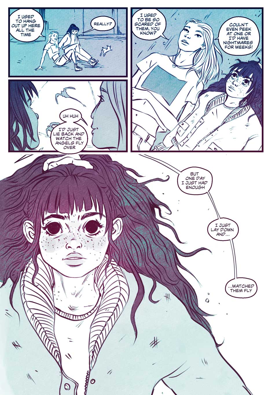 In the distant future, Earth as we know it has crumbled, destroyed and now dominated by mysterious monsters called 'angels'. Safe and sound inside a shielded bubble city, one scruffy queer girl with delusions of heroism stumbles her way through life as a loner. Now that she's found a brand new best friend, life can only get better... right?