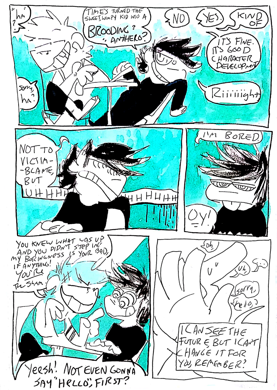 Seeing no reason not to, our heroes and their baggage meet up for a coffee date. They think? It is a date, right? I mean, it doesn't, like, have to be, but,