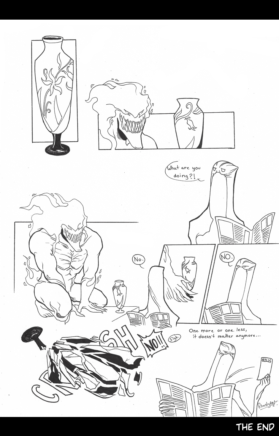 So, I missed three days of Inktober so I made a small comic The prompts were: breakable, expensive and drained