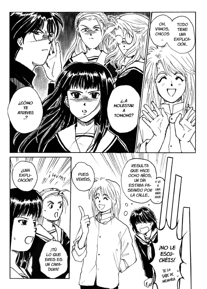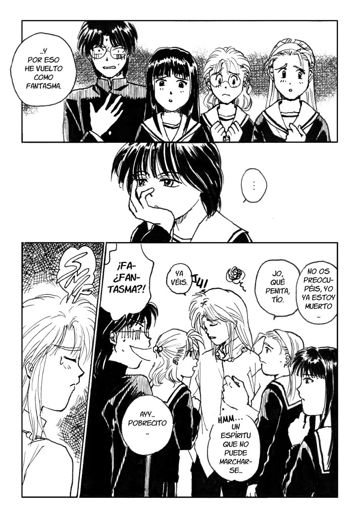 Viendo ahora esta historia, pienso que debí de haberles dado algo más de importancia. Salvo la chica ésta de la que os hablo (y un poco el de las gafas), las otras dos chicas están para acompañar a Tomomi. En fin, que ojalá los hubiera hecho más involucrados en la trama, no me gustan los personajes de adorno. Esa es una lección que aprendí dibujando esta historia.