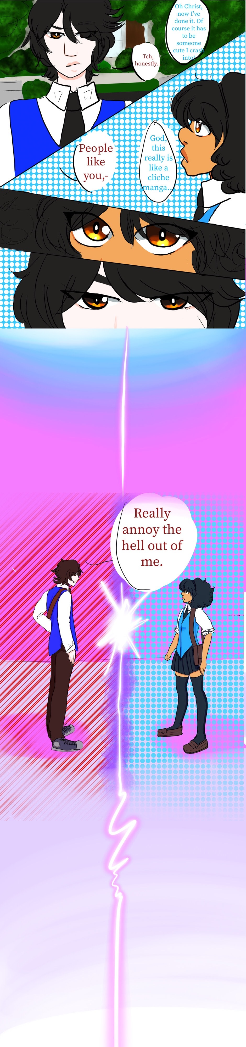 Alice and her family move to japan for her dad’s job. Alice and her siblings, Aleks and Andromeda, go about their new lives in this new environment. But when she crosses paths with stubborn and snarky Hiroka, things get a bit more complicated. This is a story about making friends, enemies, frenemies, and all the awkward and goofy antics expected from a bunch of high schoolers!