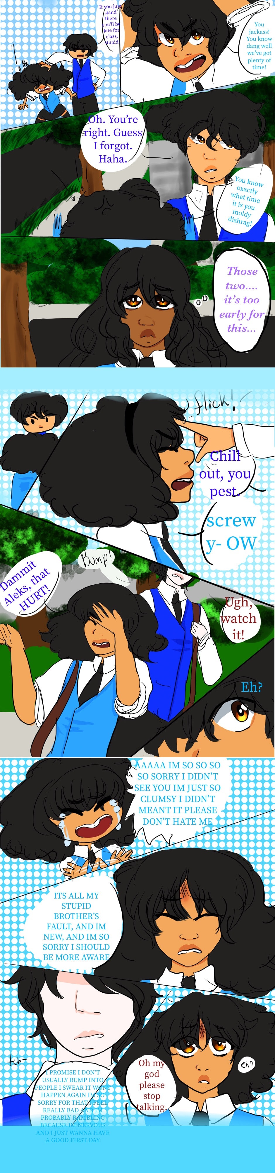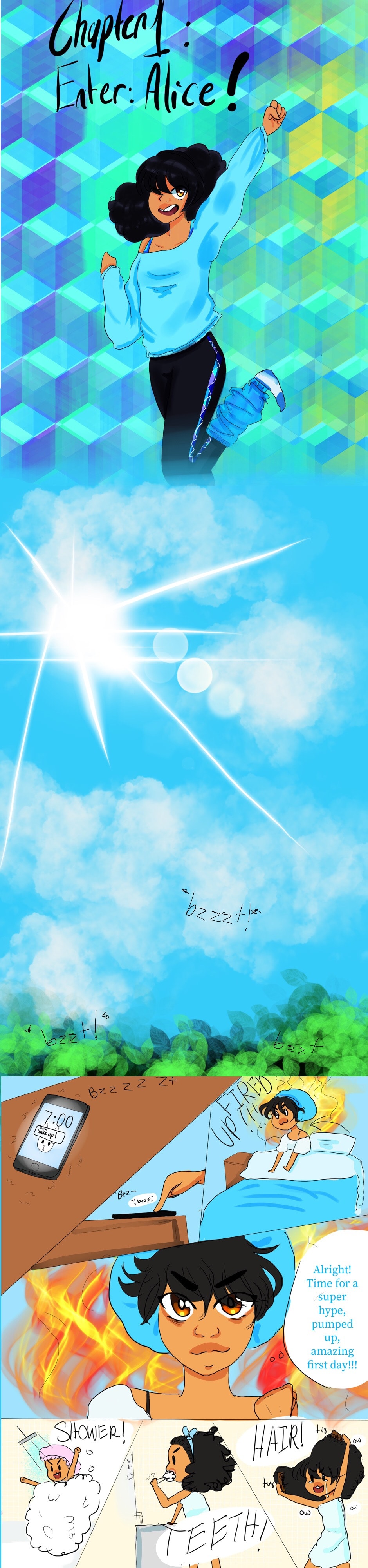 Alice is hype for her first day, Aleks is a jackass, and Andromeda is tired.