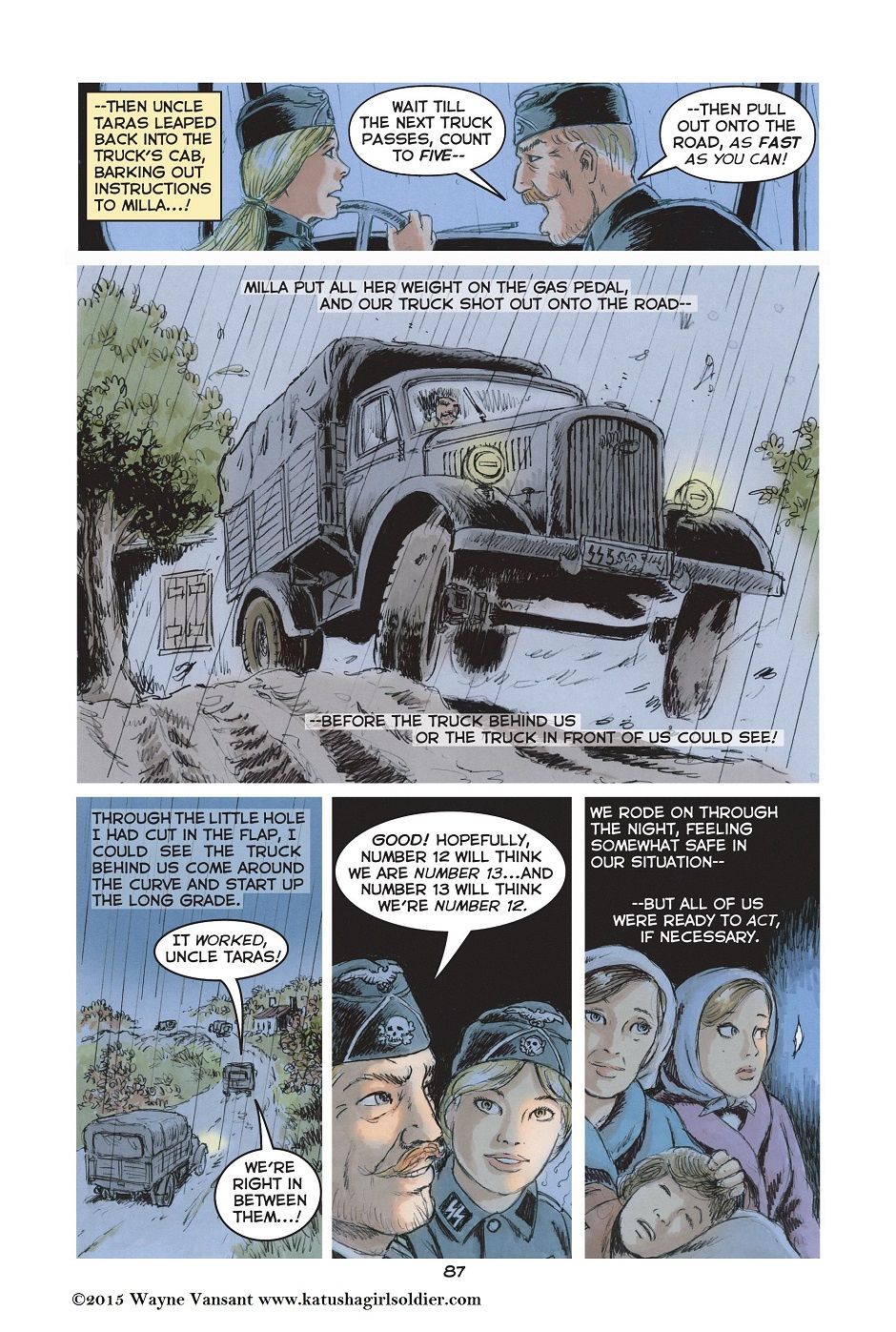 The first KATUSHA graphic novel, EDGE OF DARKNESS, is complete in 180 full color pages. Two more volumes, THE SHAKING OF THE EARTH and ON WINGS OF THUNDER, will follow, carrying her to the Brandenburg Gates and the Reichstag.