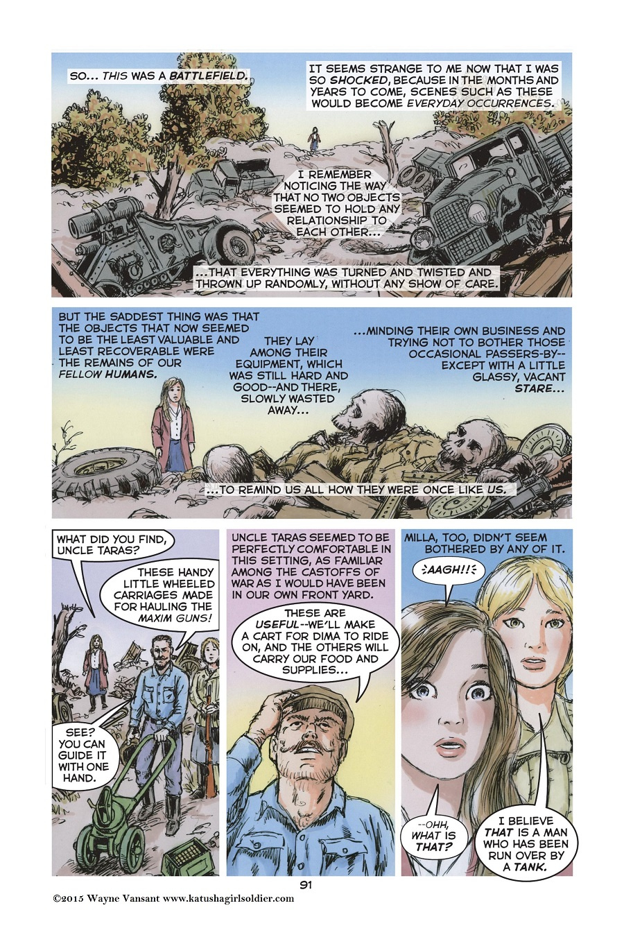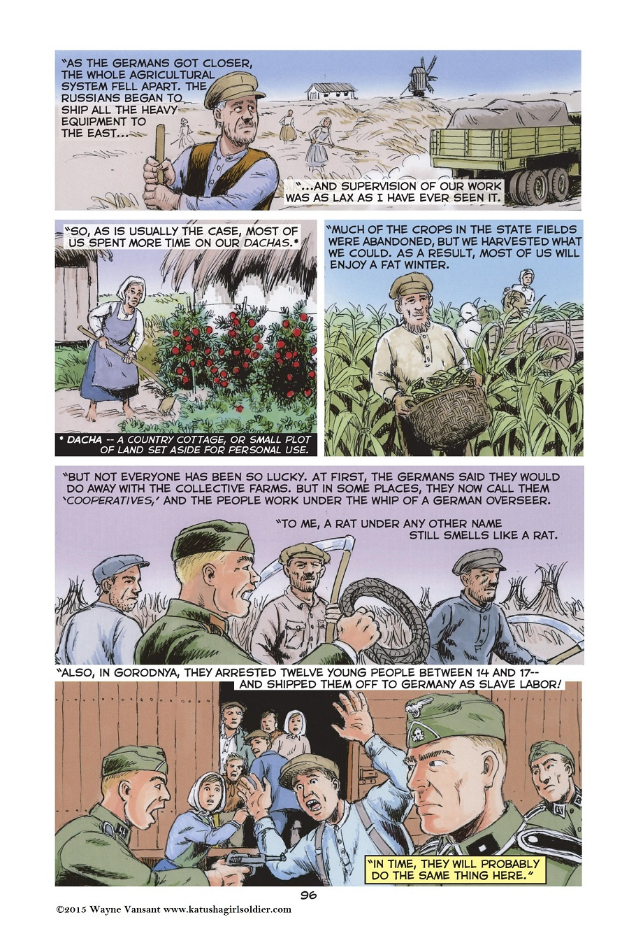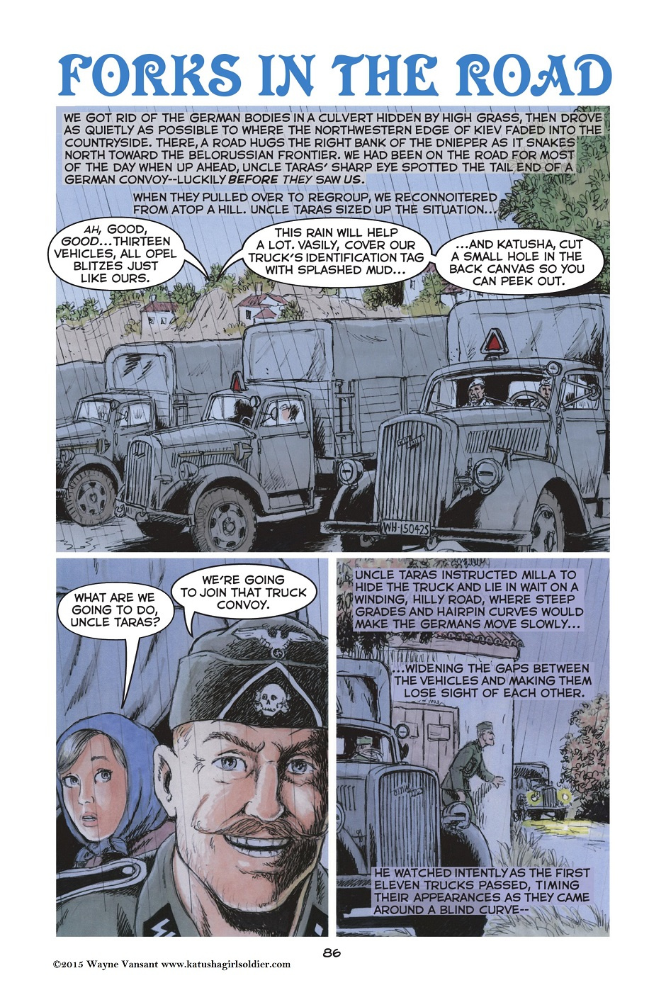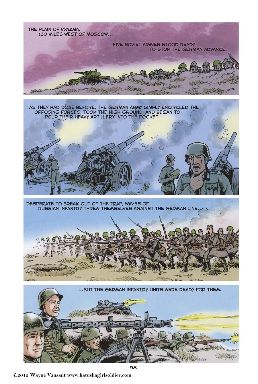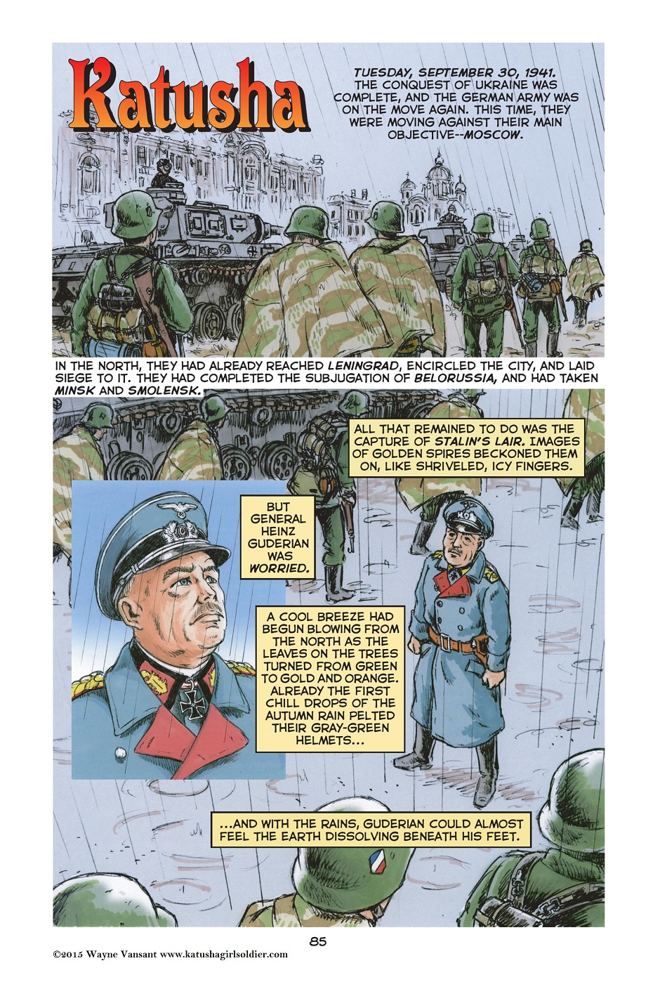 The story opens with Katusha’s graduation from her tenth and final year of school. The next morning, Sunday June 22, 1941, Nazi Germany invades the Soviet Union. The girl and her family flee to the forests to begin a partisan war against the German occupiers. Finally, Katusha enters the Red Army where she is trained as a tank driver. Her unit fights in the battles of Stalingrad and Kursk, and then pushes the Germans across Ukraine into Poland. By 1945, Katusha commands her own tank, and takes part in the final battle for Berlin.Katusha is not just a story of “good guys vs bad guys”. The war in Eastern Europe and the Soviet Union was a confusing conflict between two brutal dictators, Hitler and Stalin, and for the people caught between them choosing sides was a difficult decision.