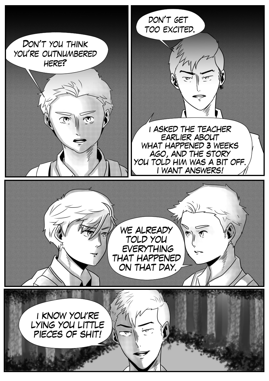Oh wow, this comic is cool! I love the anime style and the black and white aesthetic. The design of the ghost is also pretty visually interesting! I am interested to see what happens in the rest of the story. Fredrich feels like he'll be one of the good guys