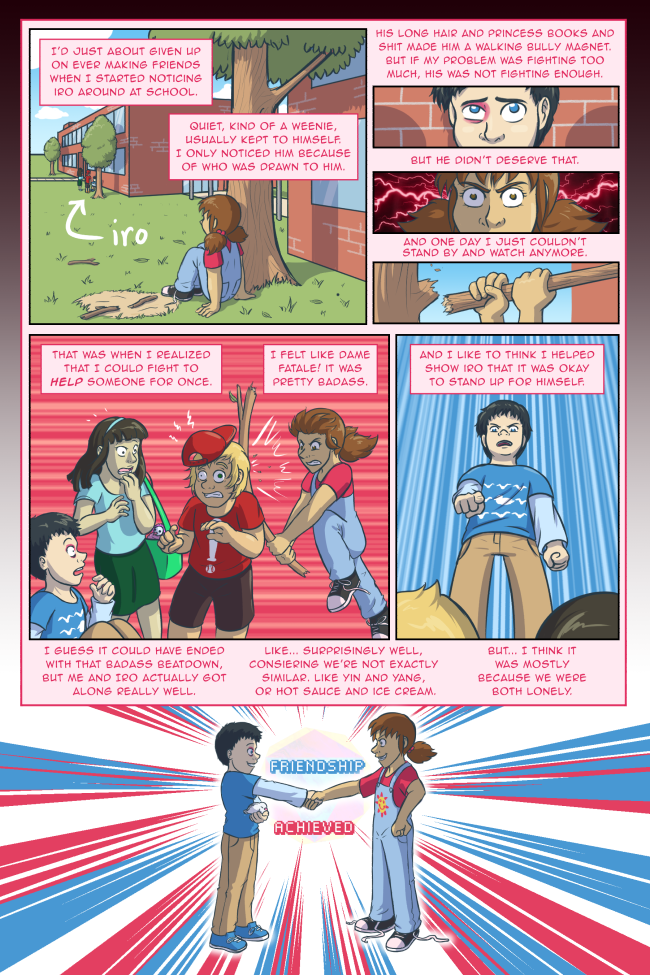 True Colors is a comedy, drama, and coming of age story webcomic about four kids on their very first day at Trueman University... a place where the friendships are fresh, the bridges are flammable, the parent corporations are ominous, the resident advisors are too much, and being true to yourself might not be all that it's cracked up to be.