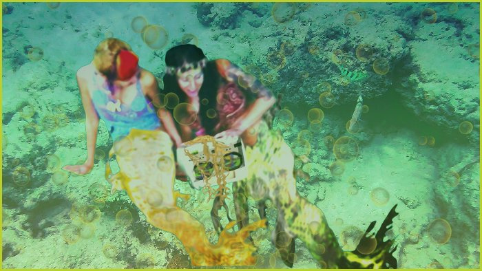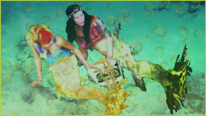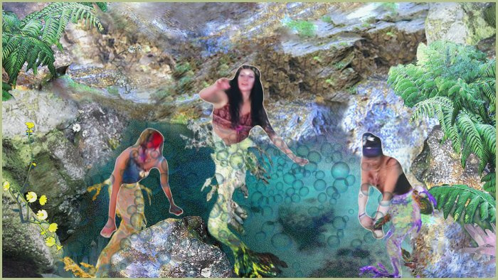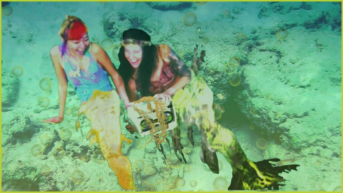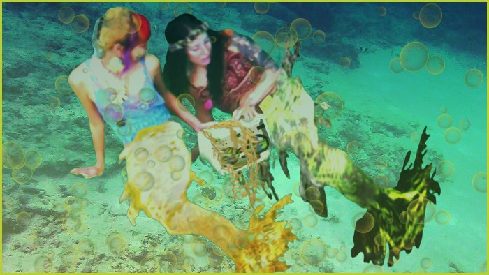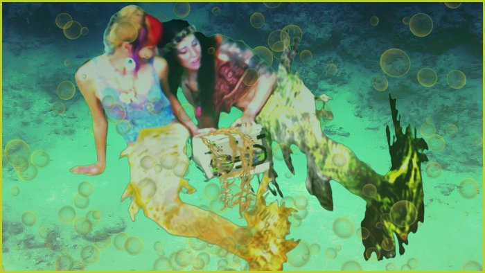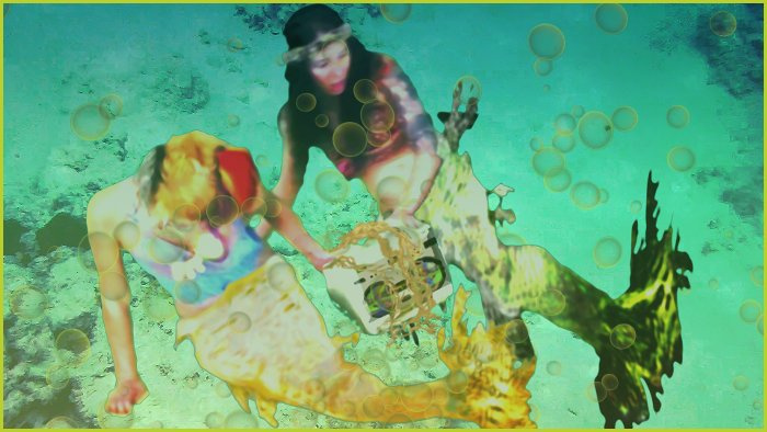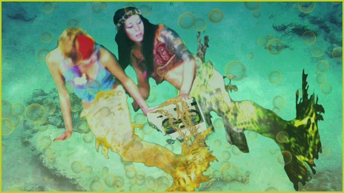 The mermaids are lured by an enchanting sound from a world above as they play in deeper waters which have never met the surface world - playing with the toys thrown from boats and now a device making sounds which takes them on this journey to find a dehydrating Earth - and more ...! This comic is created from stills from a short film - so is a photographic style piece...