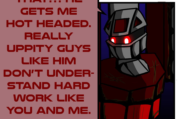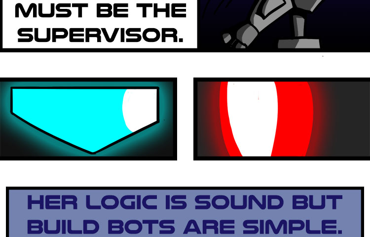 Humans began the war, but it continued with their creations. Construction of new bots had been halted until someone somehow, created Build-a. The build-bot was designed to create anything a society needs, and she wishes to create even more. Both sides wish to know her allegiance while she only wishes to build. Everyone keeps asking… Hue is she?