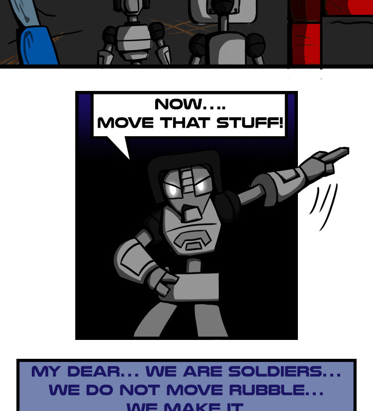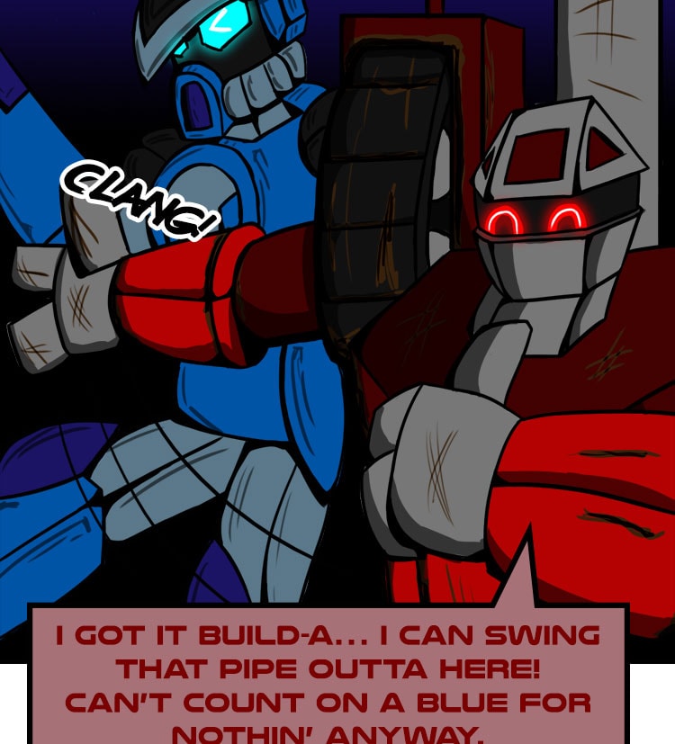 Humans began the war, but it continued with their creations. Construction of new bots had been halted until someone somehow, created Build-a. The build-bot was designed to create anything a society needs, and she wishes to create even more. Both sides wish to know her allegiance while she only wishes to build. Everyone keeps asking… Hue is she?