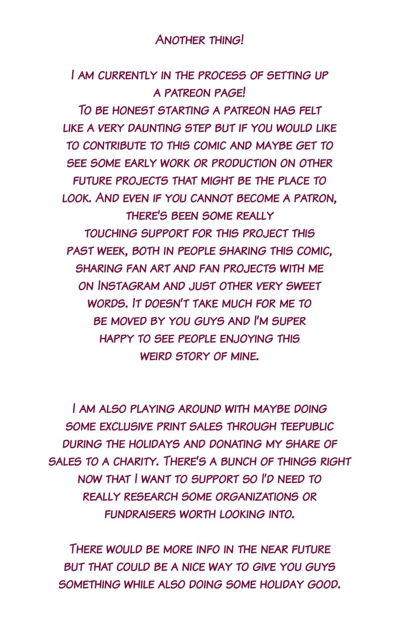 Thank you everyone for a successful Stream-kend last weekend and another hello to the new subscribers! If you miss it in the wall of text, I will be posting the first update of Book 3 before I take time off to see family for the holidays. I'm still holding off regular updates until more work is done but Book 3 is making good progress and I'm excited to share it with you. See you next week!