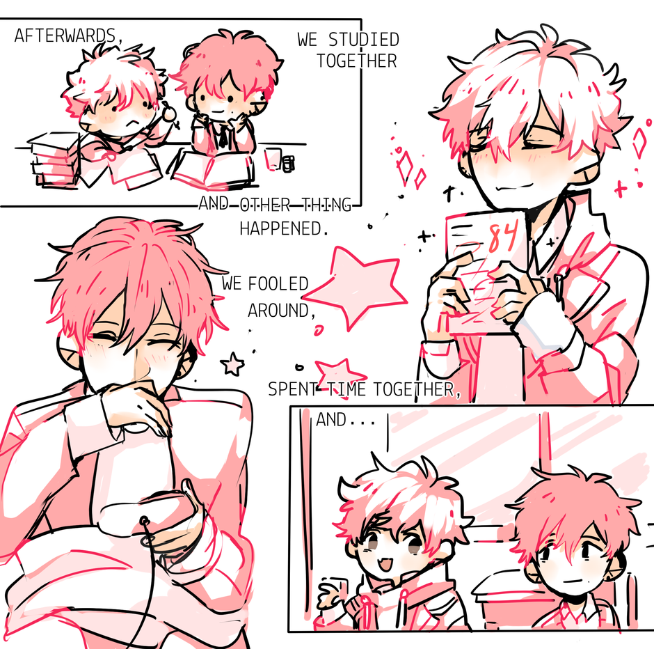 Love sick pt2/3 LEFT TO RIGHT !! ! AAaaaa MONTAGE! cuz itsa short story ;v;)~ but ayyyyy, has all the pink upsets your eyes yet?