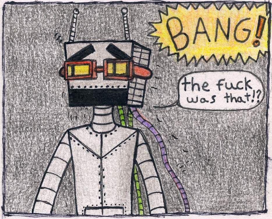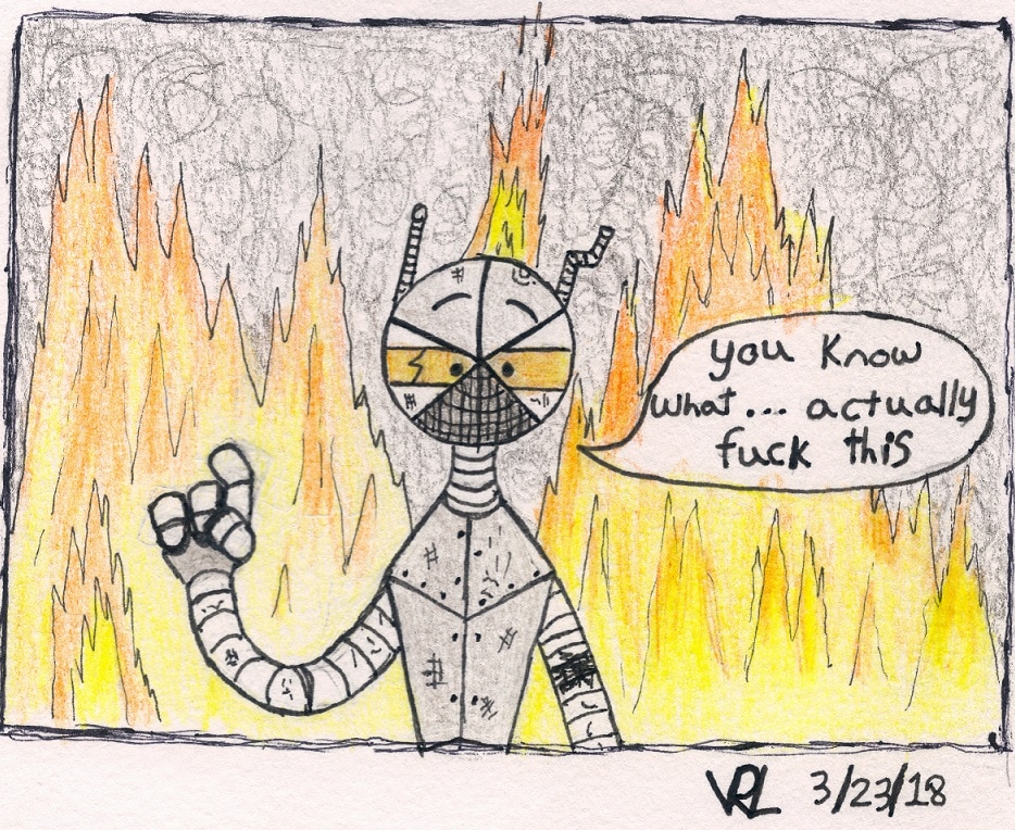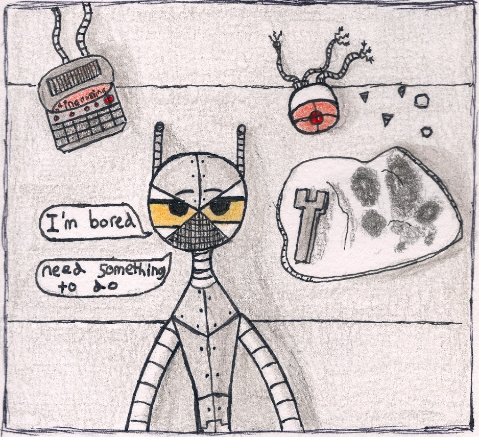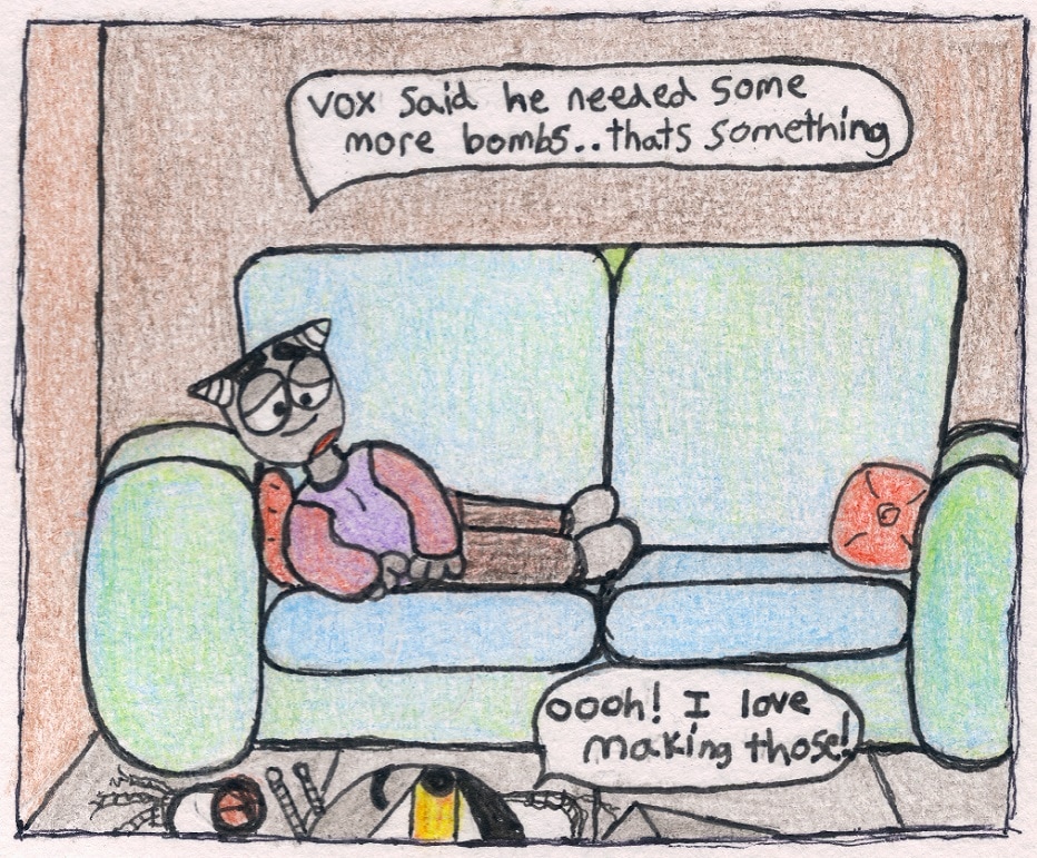 Coffin can build just about anything, but not without a few dozen mistakes in the process. their lab is lined with inches of iron plating; Coffin is a pretty sturdy robot, so it's fine if they occasionally set the lab on fire