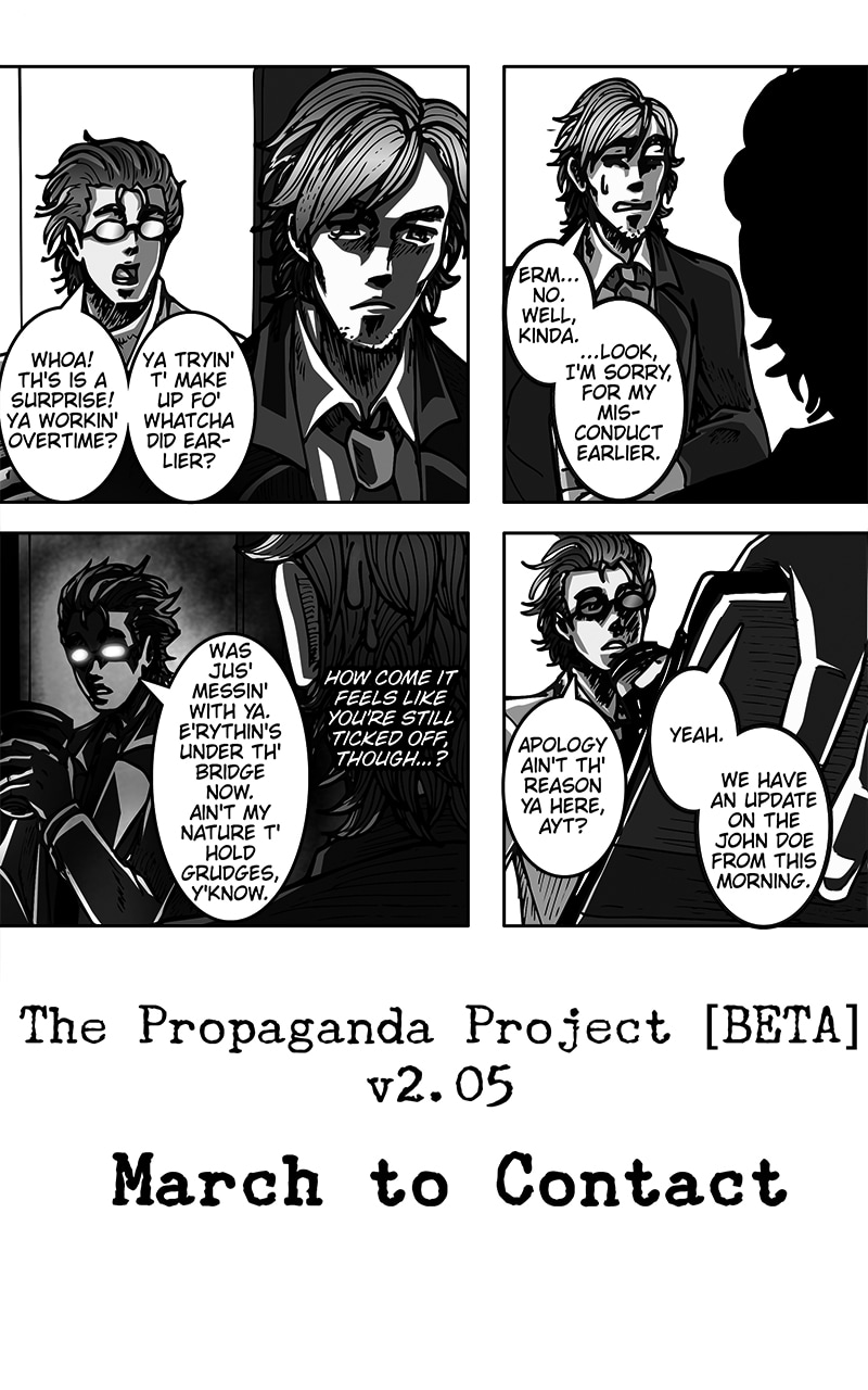 Summary: Three unlikely individuals take part in a program called, "The Propaganda Project." With each of them donning a mechanical armor, this trio must fight, and protect humanity from beings called "Hexx." However, unlike your usual superheroes, these people do not get the praise and credit they deserve, and instead, are seen as a threat to humanity, and a menace to society... Much like how their lives are without their machines.