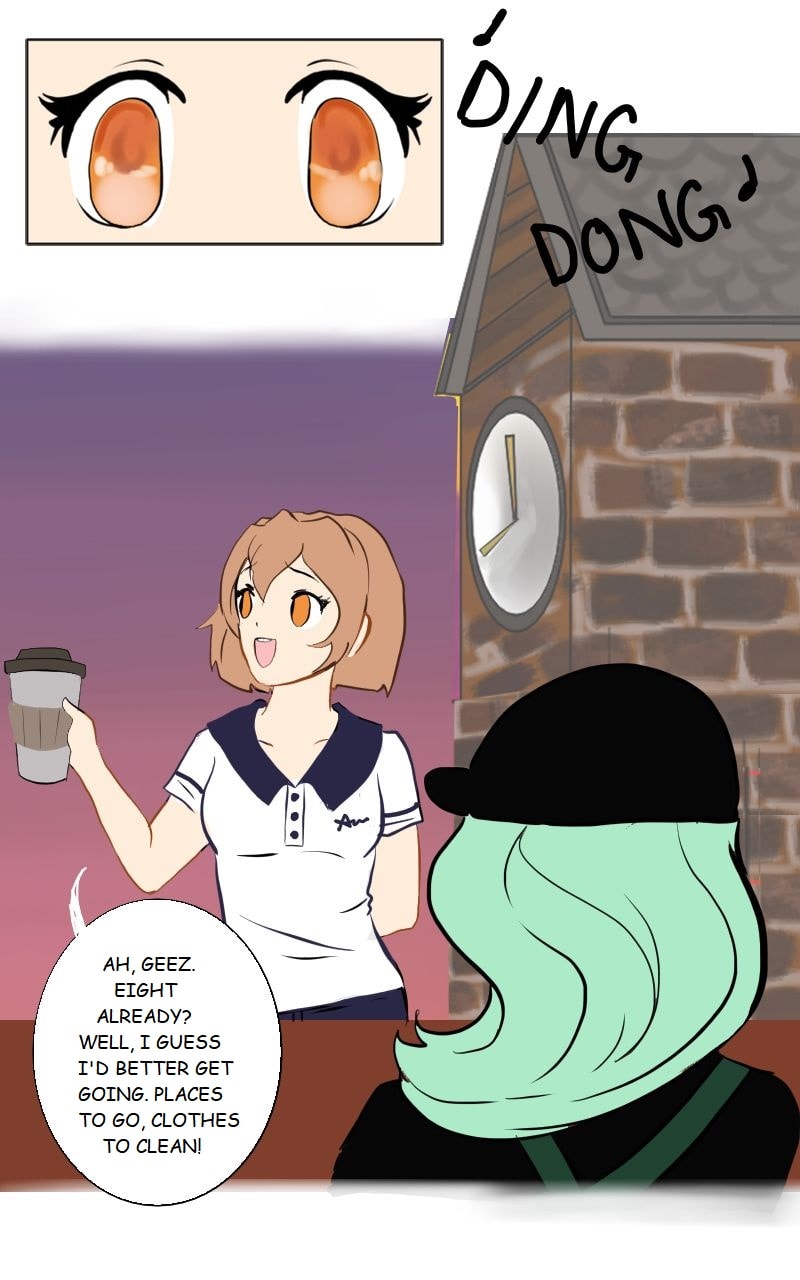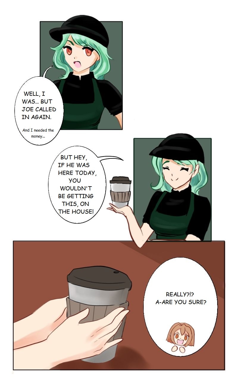It turns out Coffee's day is just beginning when she leaves Creme de la Creme. She works a late shift at a dry cleaner to try and make ends meet. But not before visiting her favorite cafe and her favorite barista!
