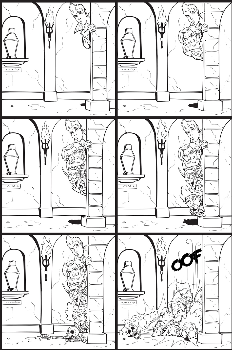 Battlements takes place in a fantasy world all on its own. Sword-and-board! Wizards-and-warriors! Bears-and-battle maces! Legendary creatures and adventurers gallivant across the lands seeking fame and fortune. Then there’s these jerks. Follow Hector, Shane, Rail, and Gene as they try to make a name for themselves as adventurers while staying alive.