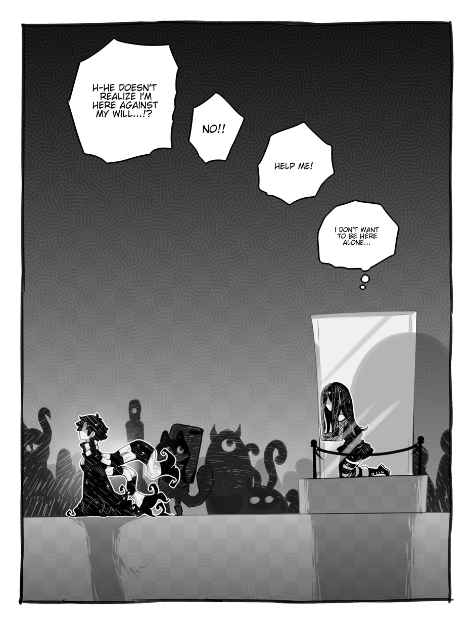 The story begins where Aria and Nicholas, very confused, meet Merfie, a monster that welcomes them to his home.