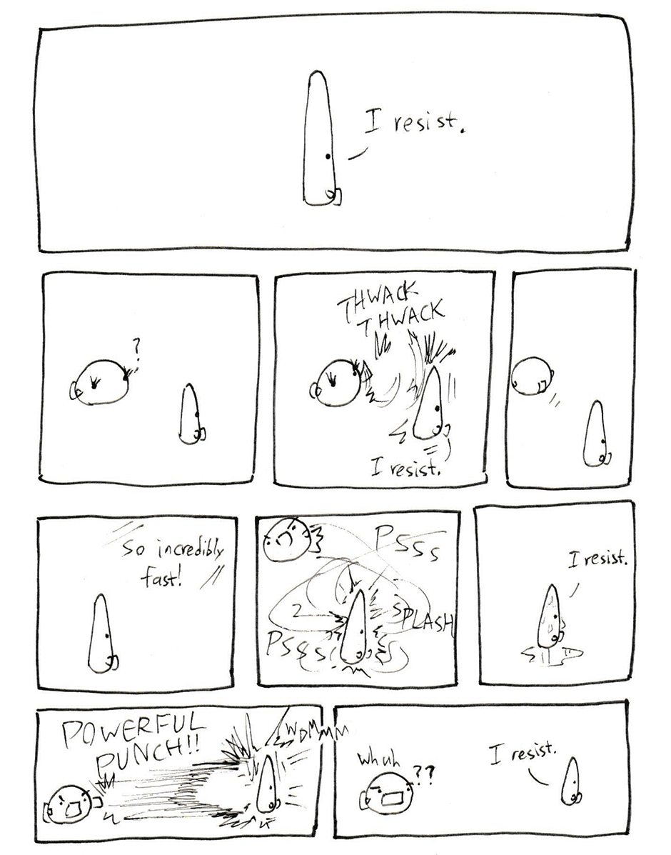 He resists.
