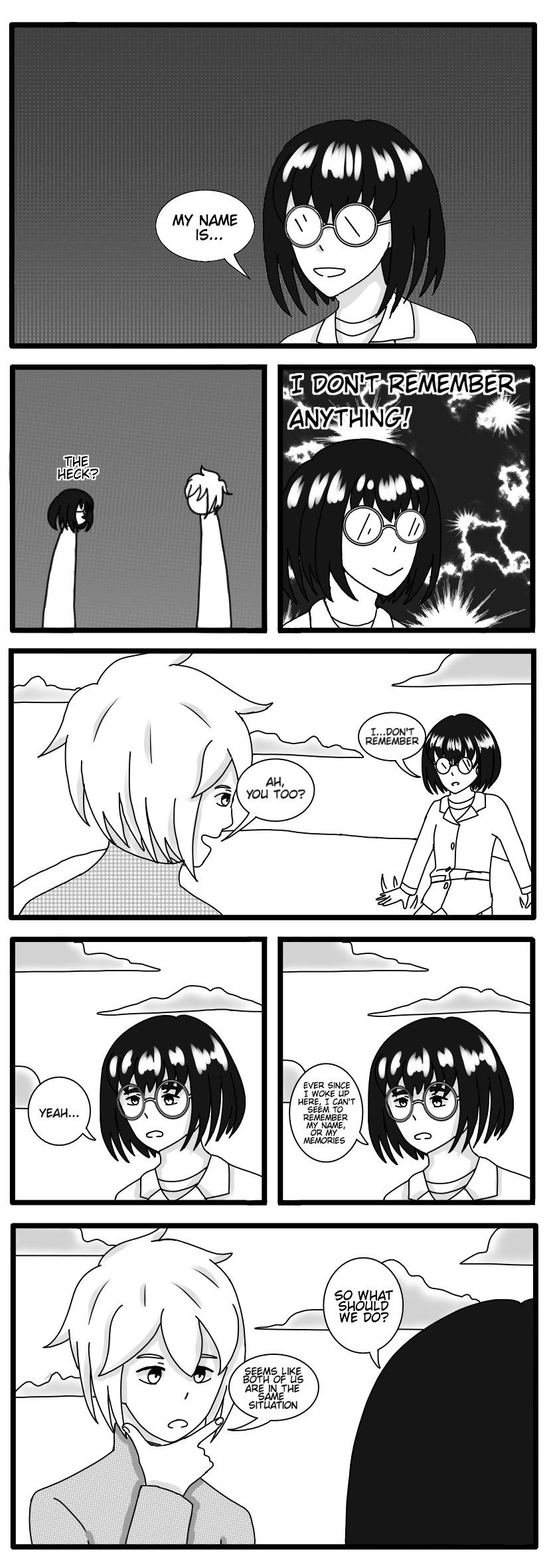 Two people wake up to an unfamiliar world with no recollection of their names and memories. Now, they are set on a quest to find their memories while trying to find a way back to their world.