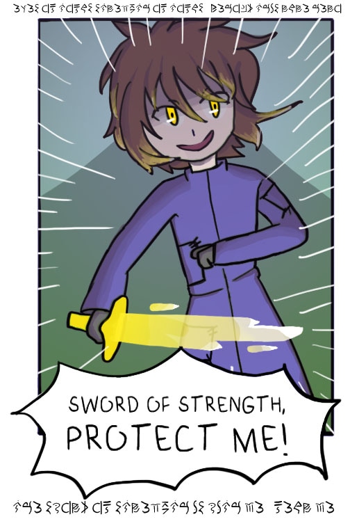 Eyes of Topaz, Strength of Topaz --- behold this rare hero The Sword of Strength is with me, fear me.