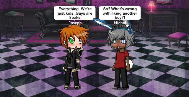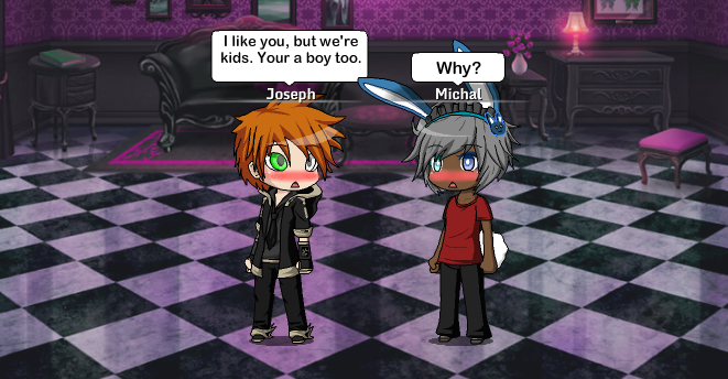 This is a gay love story created using Gacha Studio. Michal has been a little feminine since he was a kid. Joseph found that he just never liked girls. Michal thinks he's normal, until he meets Joseph. They get to raise kids together, and watch as they grow. What does the future have in stored for them?