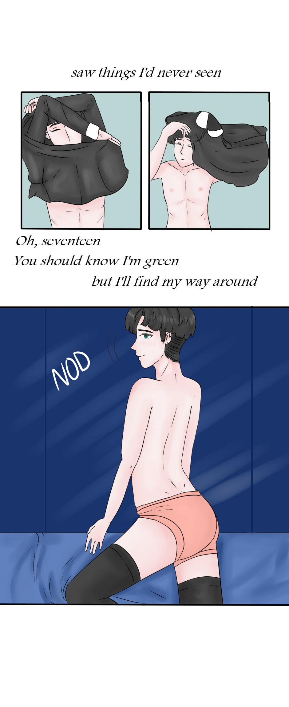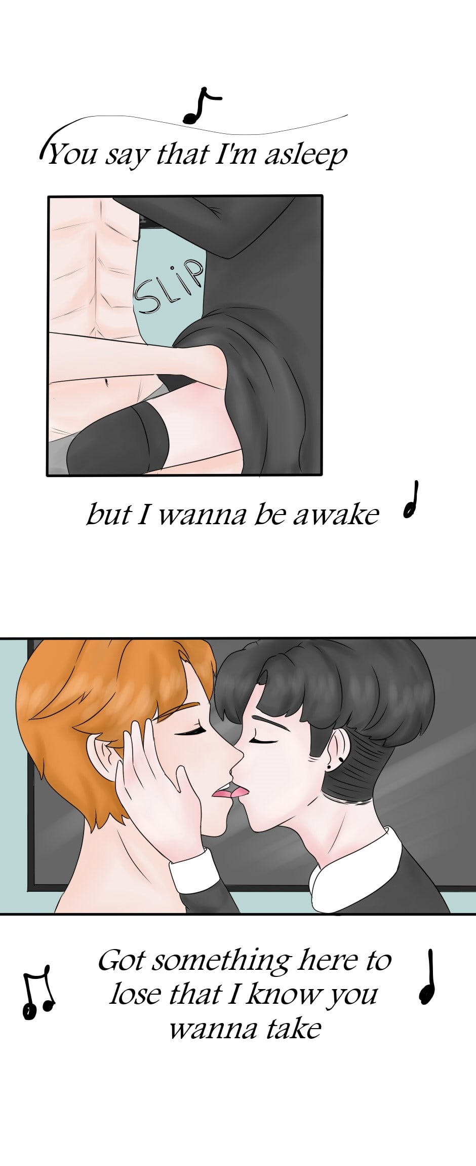 Technically, stuff posted on Tapas needs to be censored, so if I was you, I'd be careful and censor it, that way someone won't report it. On a different note, as soon as I read the lyrics, I was like aye, it's Troye Sivan 😂