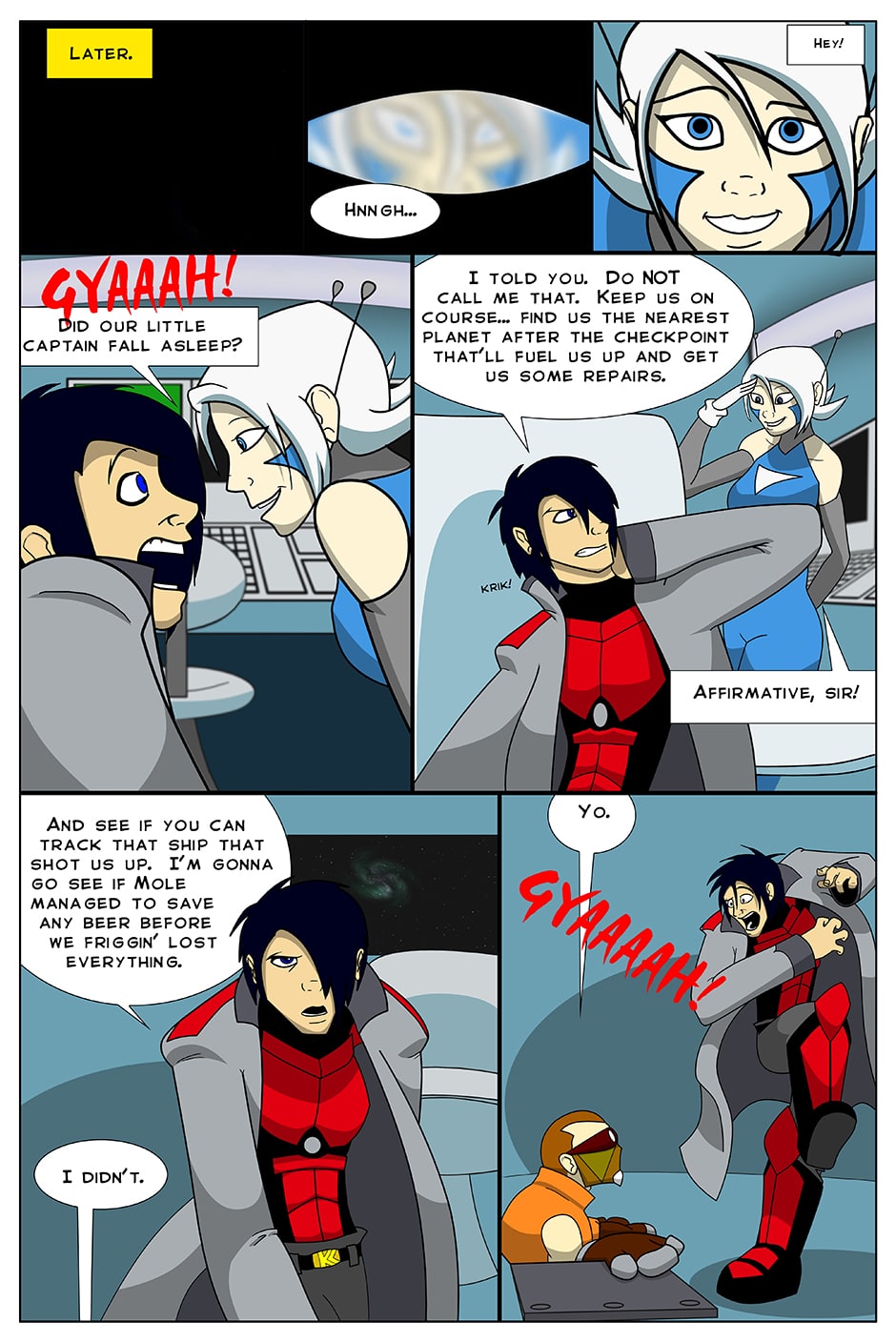 A rally race... in space! Join Captain "Kaz" Collins and his crew: Leesys, the android with multiple personalities and Mole his plucky engineer who is addicted to fish sticks as they face vengeful hackers, obnoxious aliens, egomaniac racers, and planetary police in their quest to win!