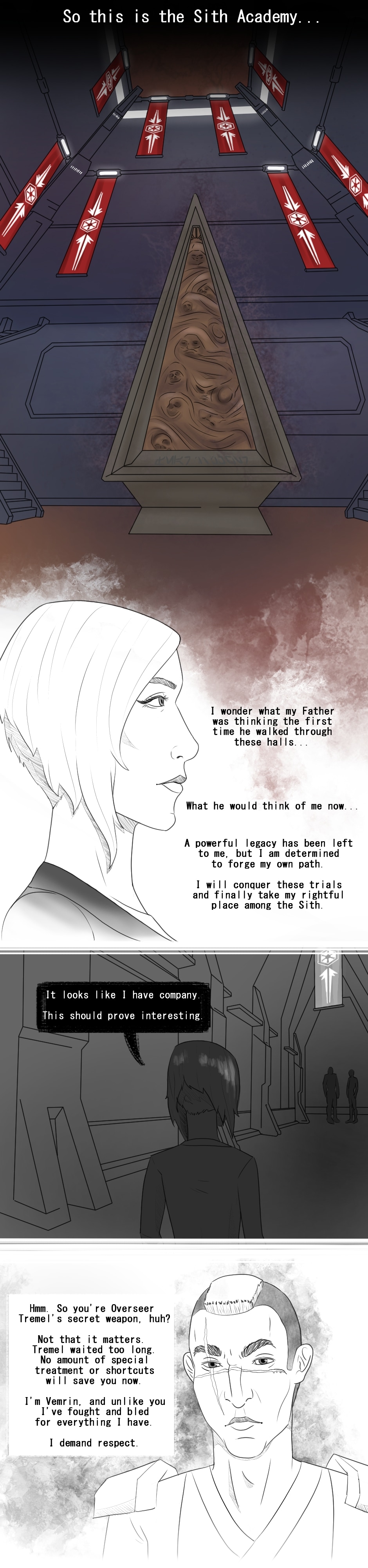 Artis arrives at the Sith Academy after successfully retrieving the ancient warblades. Upon her arrival she meets Vemrin, her mysterious rival.