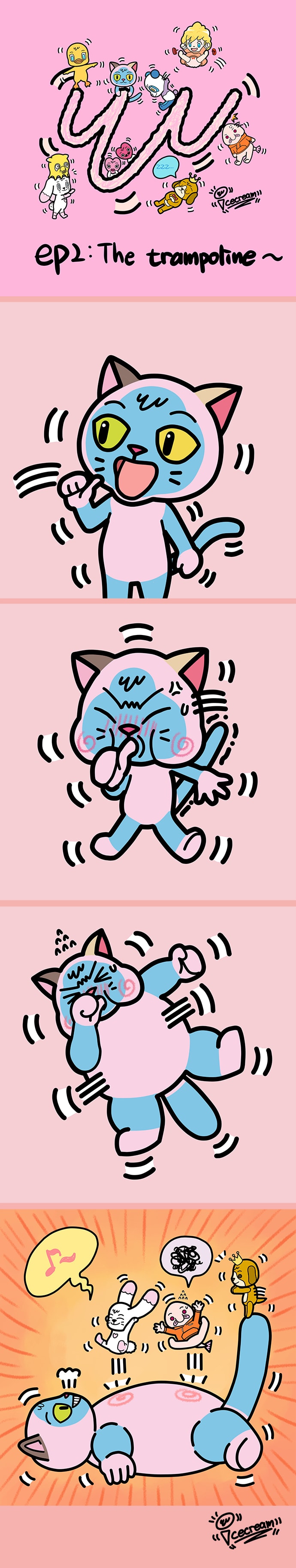 This episode is about Anzy. Anzy fluffs out himself to become the trampoline. And other characters(Binu,Munzi,Vanilla) play on it.^^