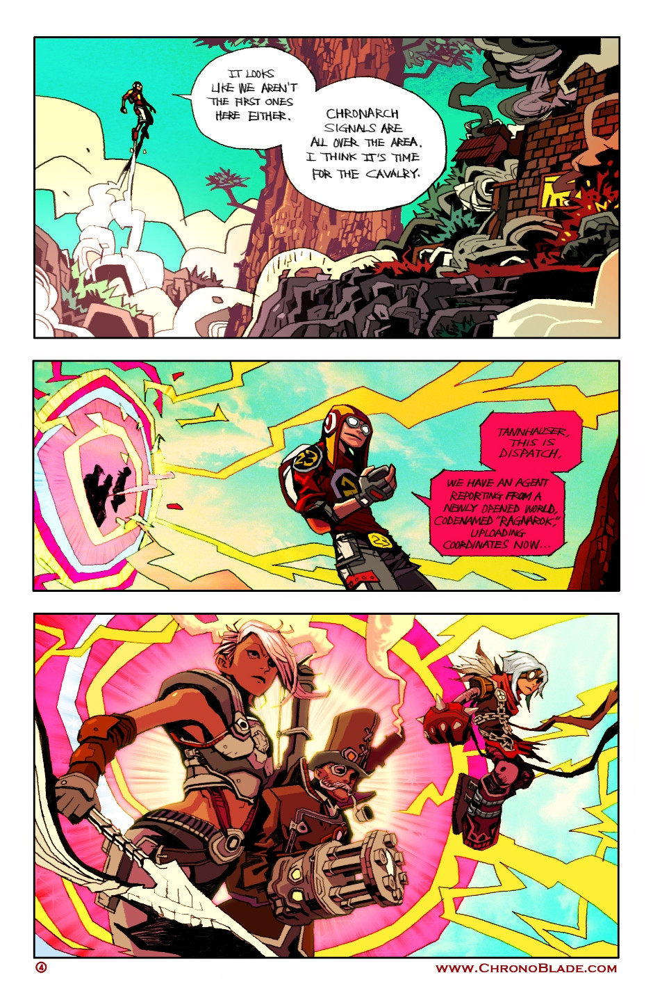 The ChronoBlade Graphic Novels supplement the backstory of the online video game of the same name. ChronoBlade takes place in the Multiverse where countless possible Earths exist. A shadow is rising which threatens all worlds, known as the Chronarch Imperium. As an inter-dimensional Hero you must fight to protect the worlds they would corrupt and destroy. Explore the many realities of the Multiverse, search for clues about the Chronarchs, and unleash the power to stop them!