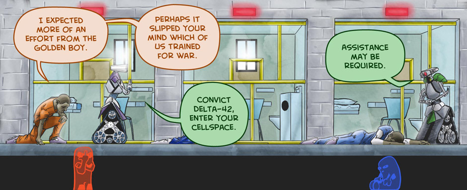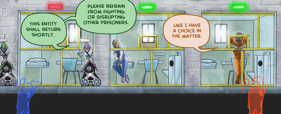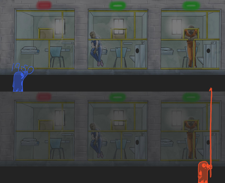 The two men see each other for the first time since being incarcerated. They amiably resolve their differences.