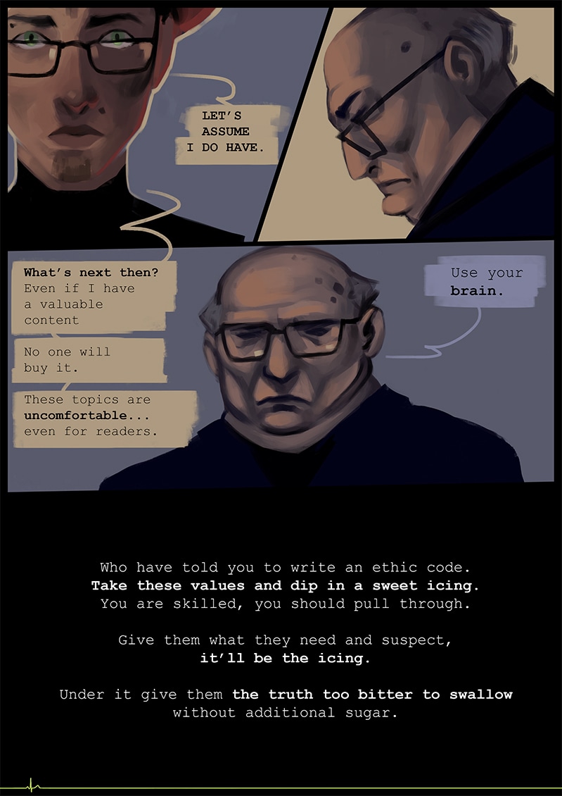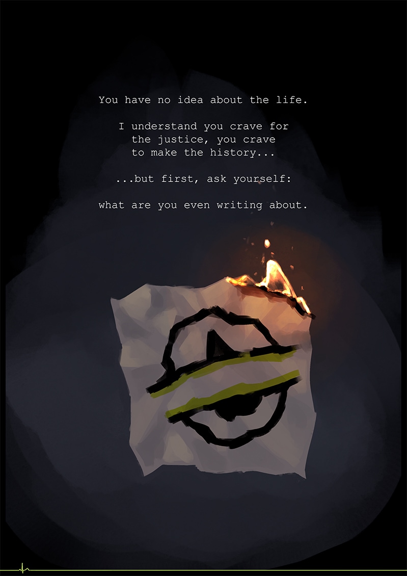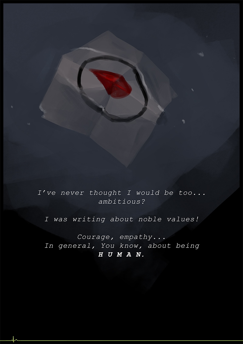 Blood has no right to be gold, or black. Neither unhuman has right to be human, nor the other way around. It's so easy for people to get rid of their human traits, ones we, Unhumans, work for till our very last breath.