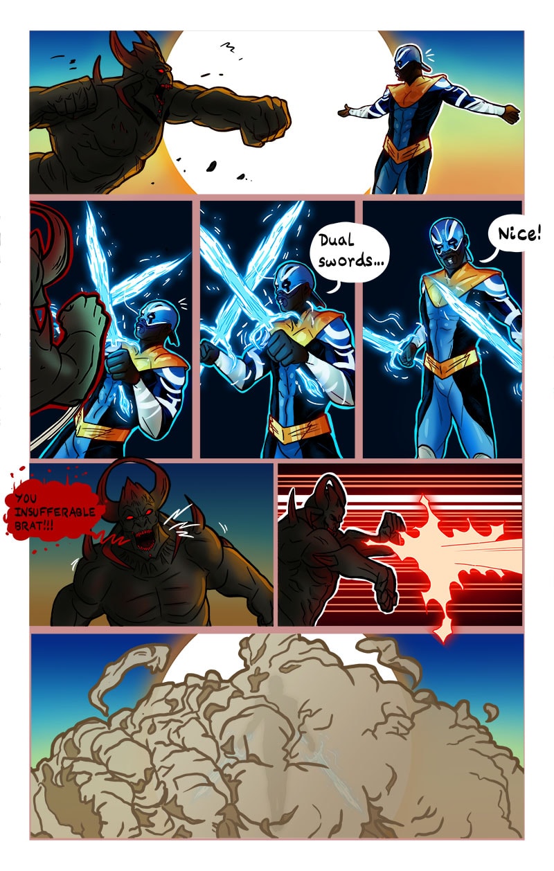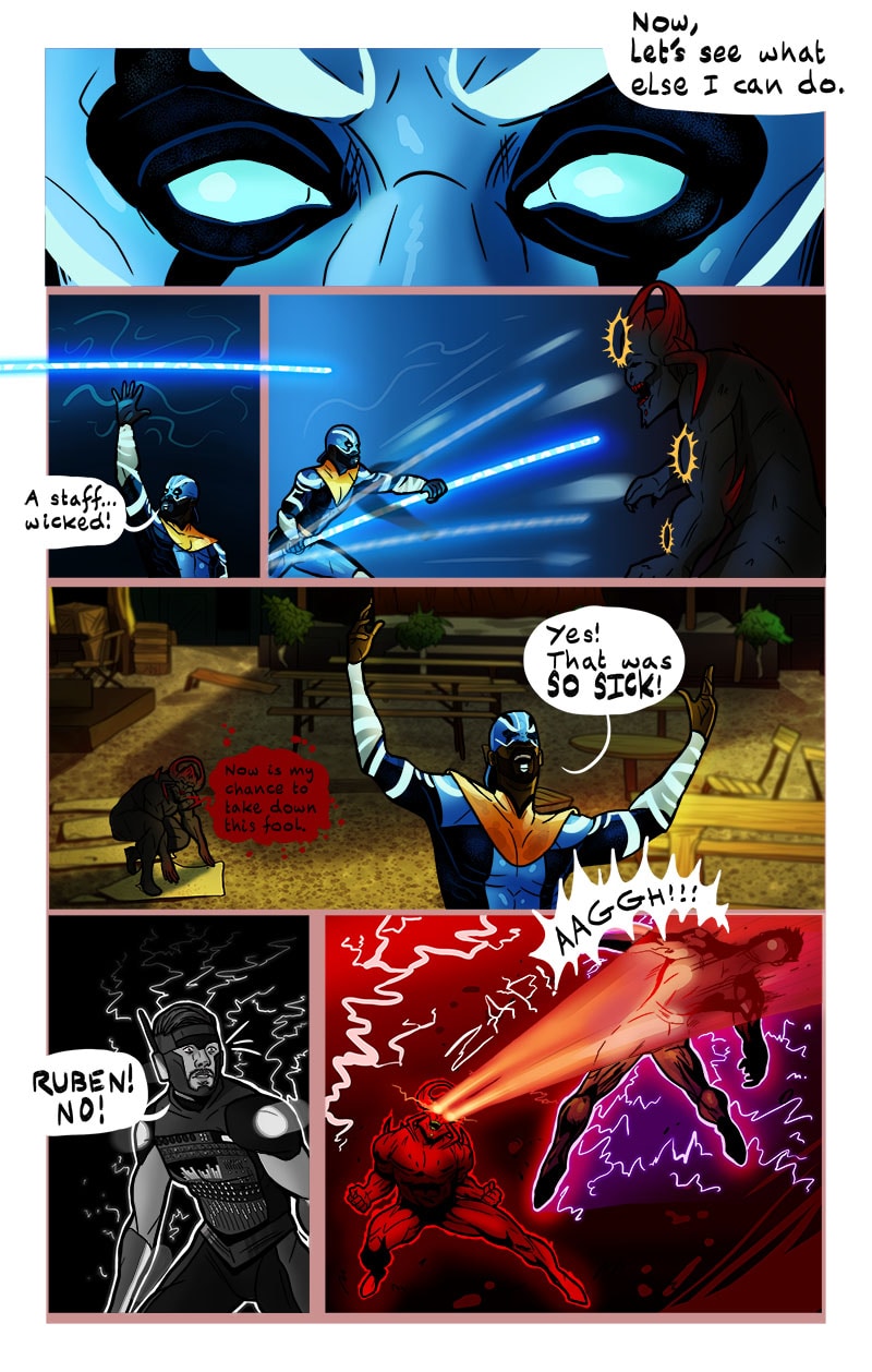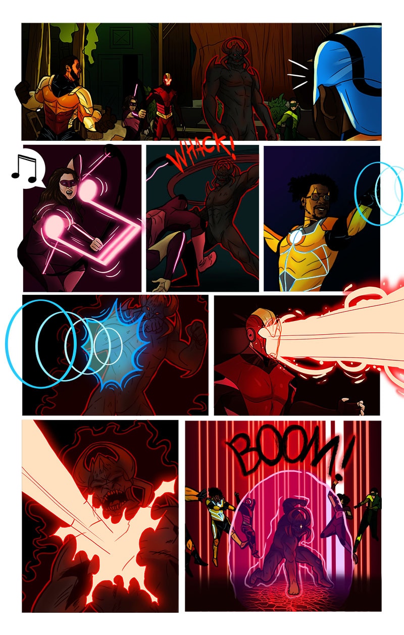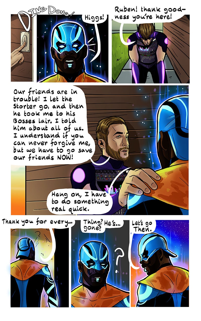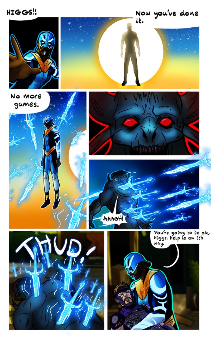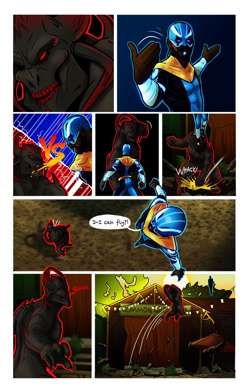 While at his new house, an anonymous package is delivered to his doorstep. He opens it to a mic, and with the click of a button his superhuman form is revealed! The mic becomes a blade of light and he inherits the ability to see beings of another realm affecting the present reality. Thus begins his journey to figure out what the heck is going on and why.