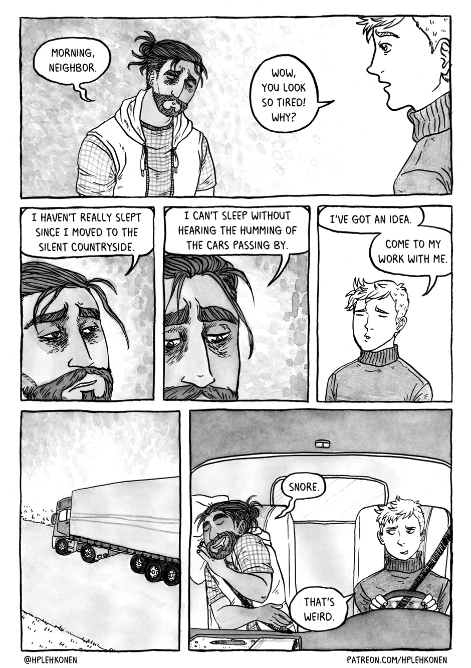 Have you read my Webtoon Life Outside the Circle? It's a fully finished comic about a hipster trans guy from Helsinki moving to the countryside where he meets the love of his life!! A hillbilly single father!! If you haven't read, it, go read it NOW!!