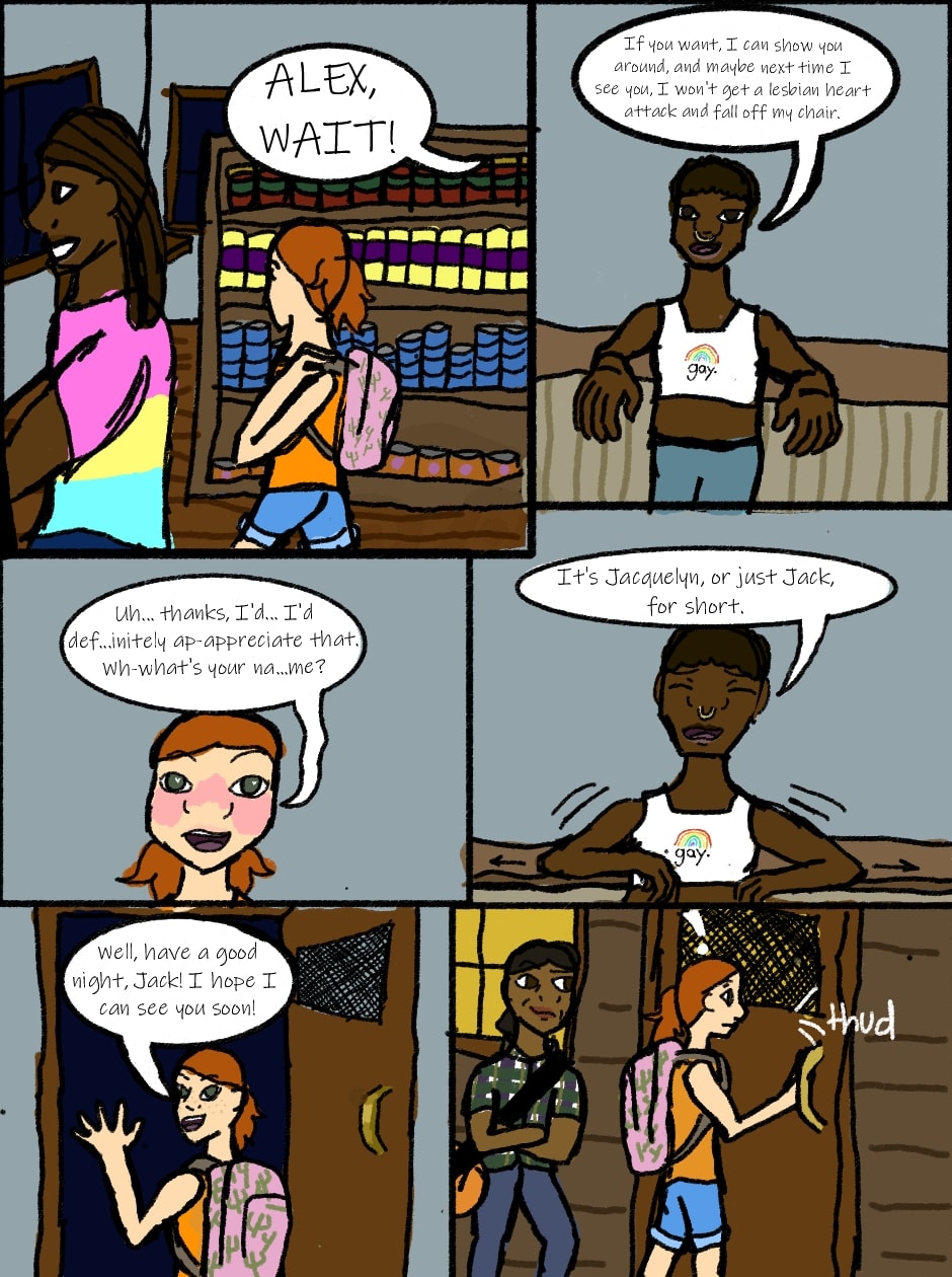 Alex can't speak English when she's having a moment of gay anxiety (or as I call it, gaynxiety), and Jacqueline just doesn't know how to stand/sit/do anything that involves not being on the ground.