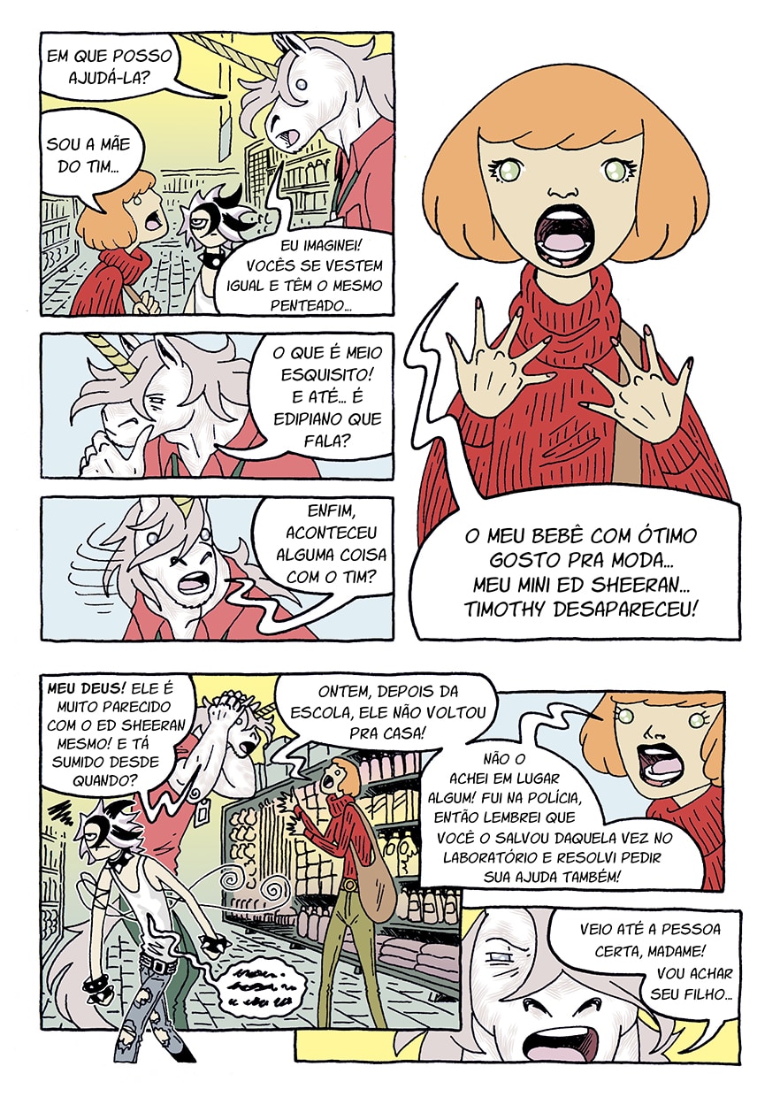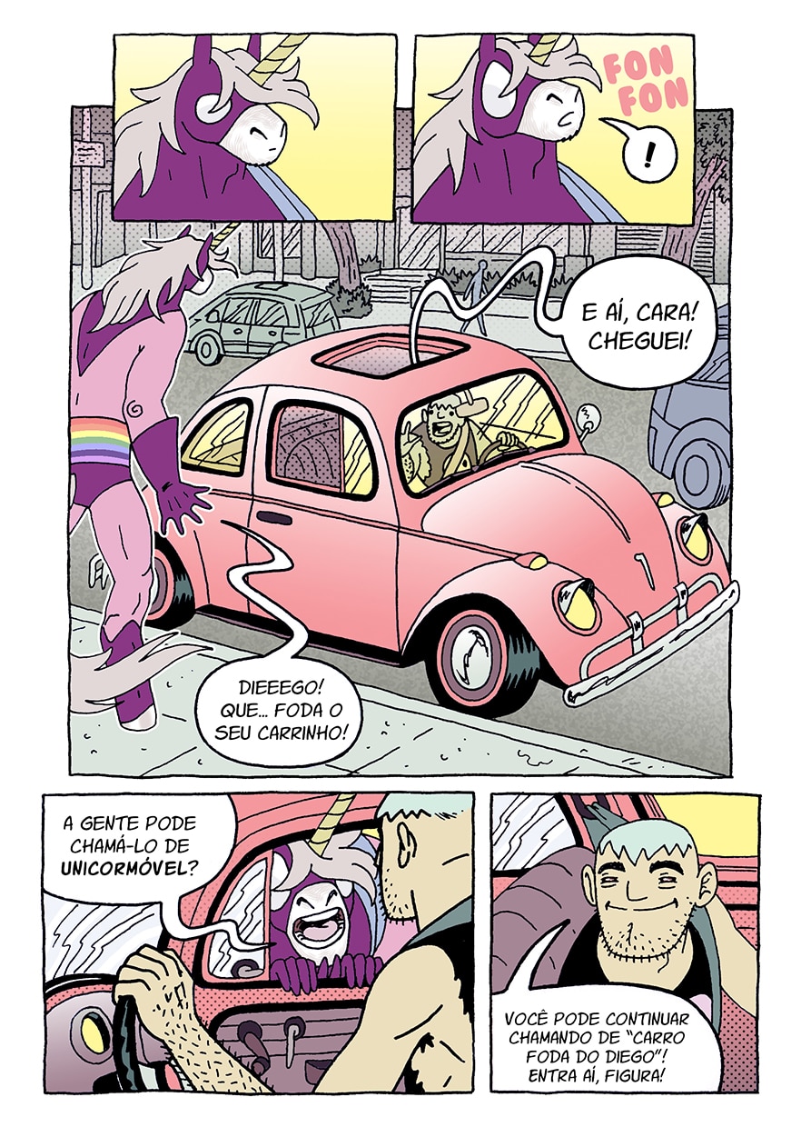 Um gostinho do que acontece no Cara-Unicórnio #05... Pra ser mais exato, as 12 primeiras páginas do quinto capítulo, as 30 restantes só na HQ impressa.