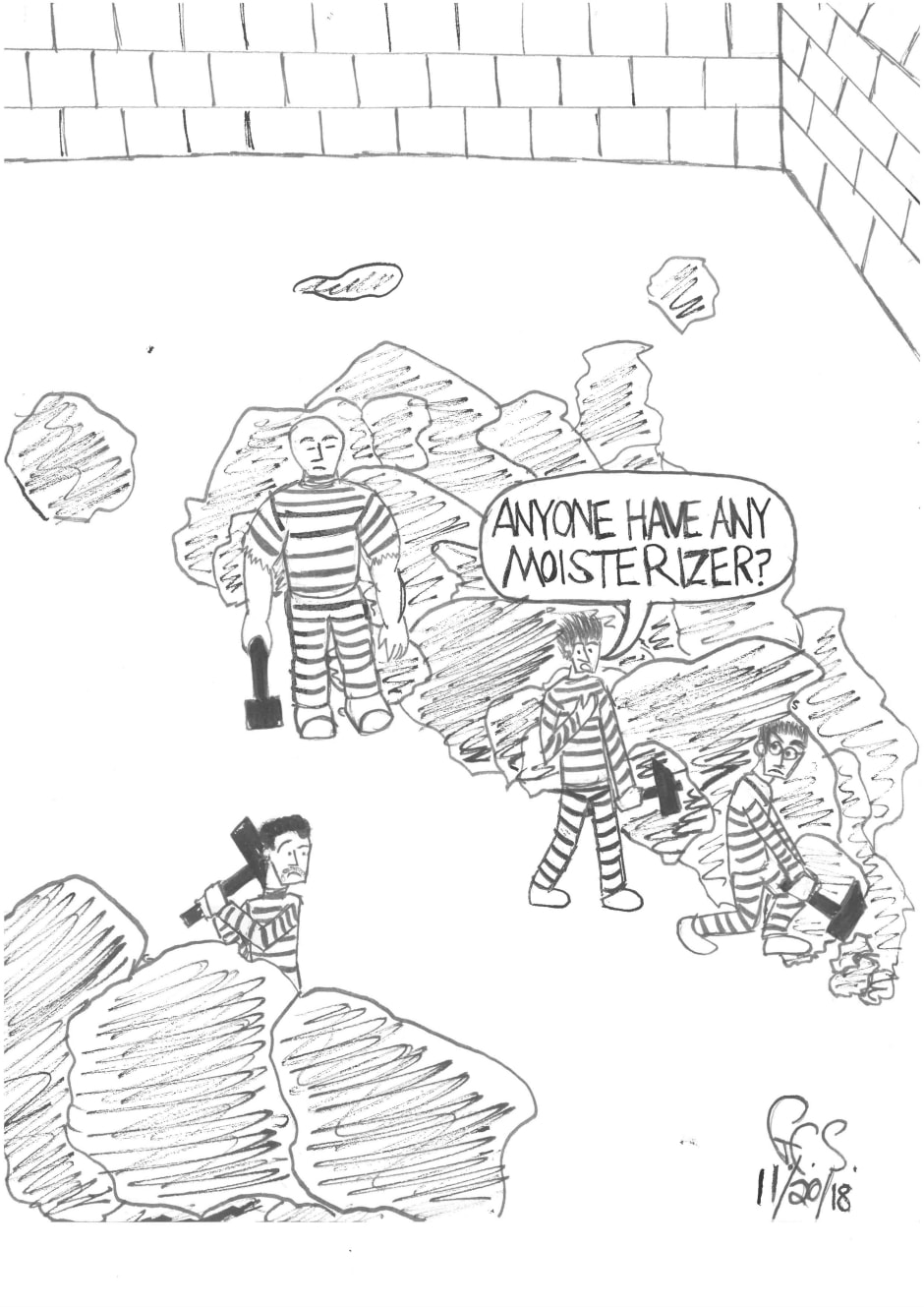 In this episode of the web-comic "Whales Speaking Yiddish," we see a prison inmate working the rock pile who hasn't quite grasped what kind of environment he lives in. Text and art copyright 2018 by Gabriel Connor Salter.
