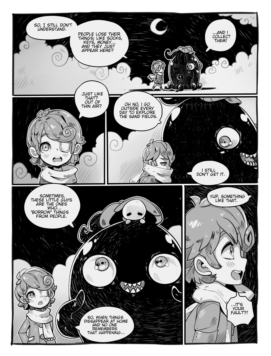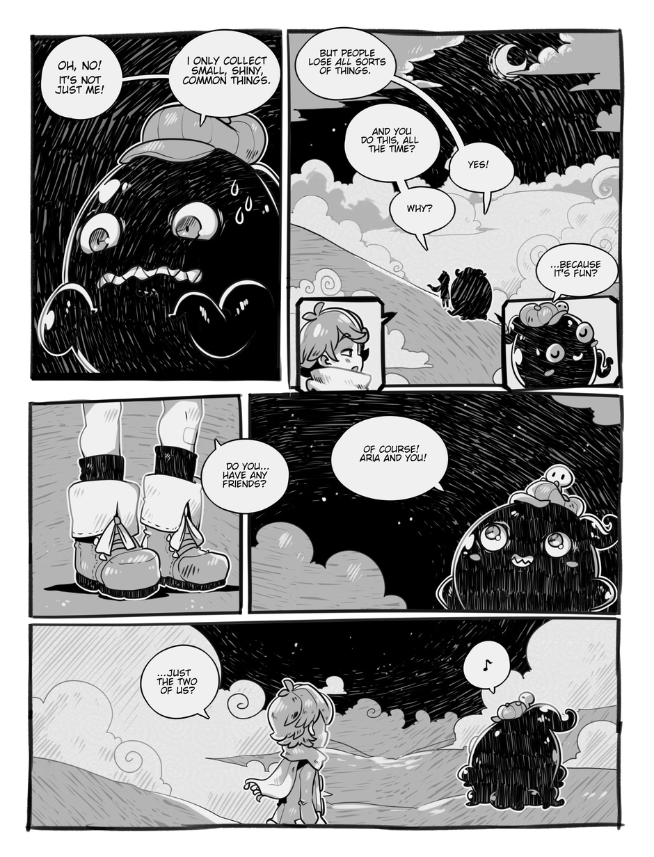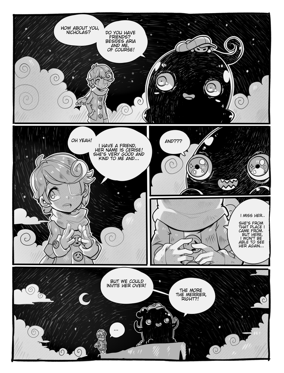 The story begins where Aria and Nicholas, very confused, meet Merfie, a monster that welcomes them to his home.