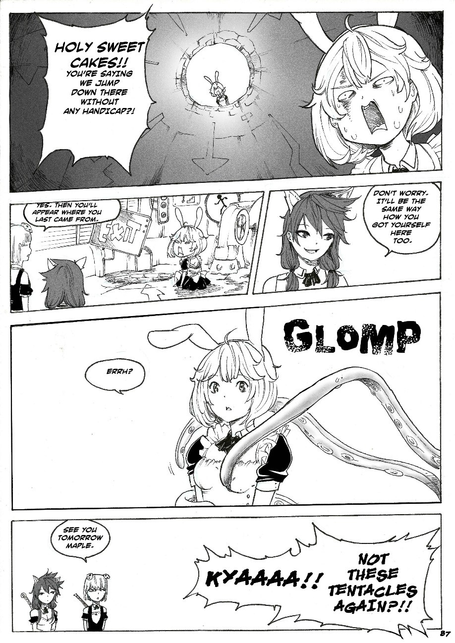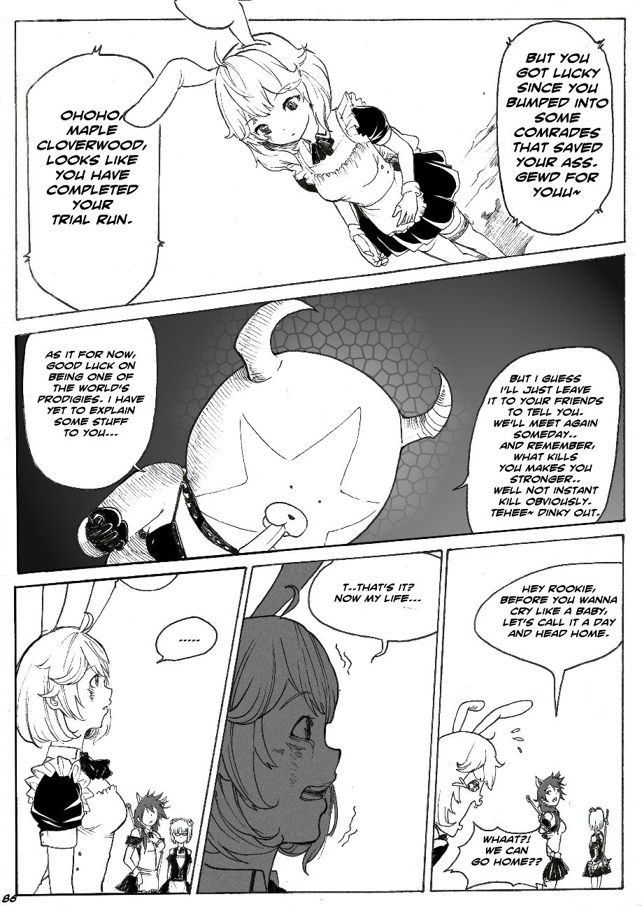 Maple returns back to her world and gets briefed by her new friends about their jobs as zombie hunters.