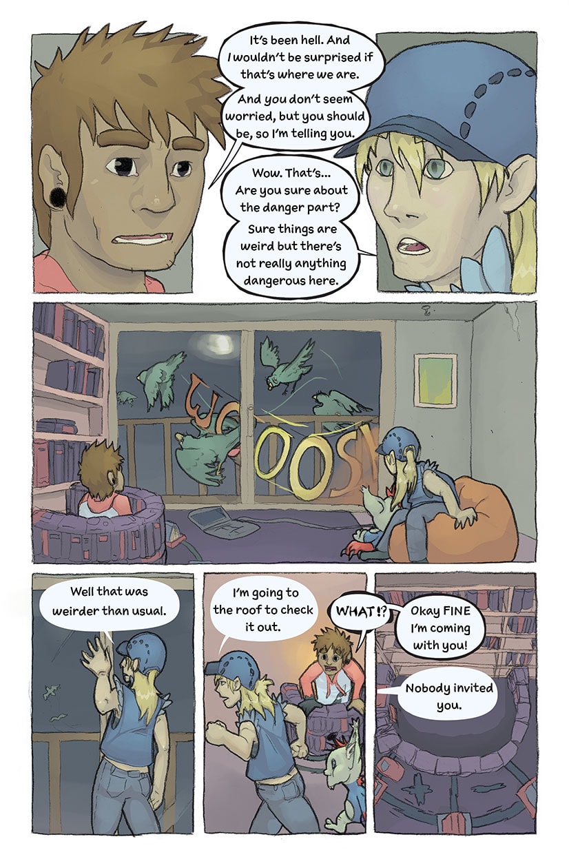 _____. is about a world much like our own that has collapsed on itself and become very strange and dangerous. Our three heroes have to find their way to safety while confronting an otherworldly villain and unraveling the mystery of the collapse. Updates Wednesdays - or see updates two days early, on Mondays, at www.nulimbo.com.